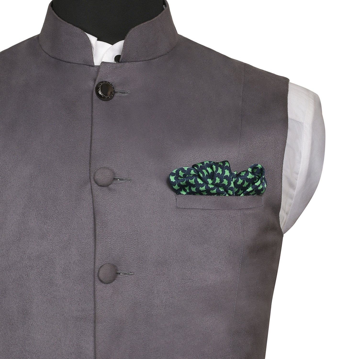 Chokore Light Sea Green & Navy Blue Silk Pocket Square - Indian At Heart line