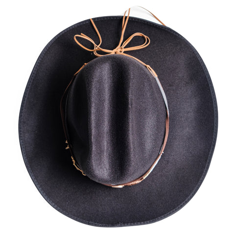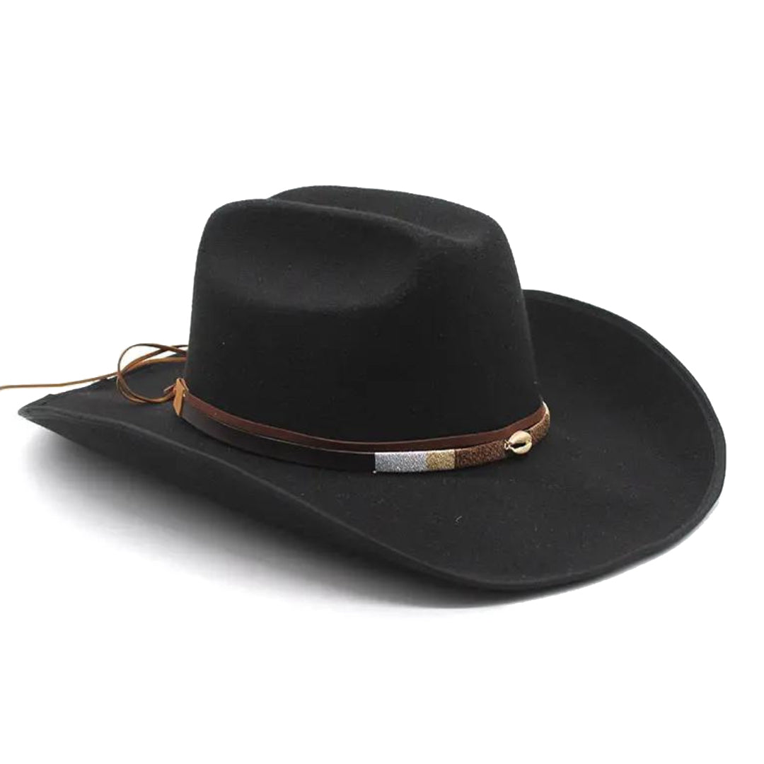 But what sets it apart is the bold leather belt with shell and thread detailing wrapped around the crown, giving it an extra touch of cowboy charm. Whether you're taming the range or hitting the town, this hat will make you feel like a true rodeo.