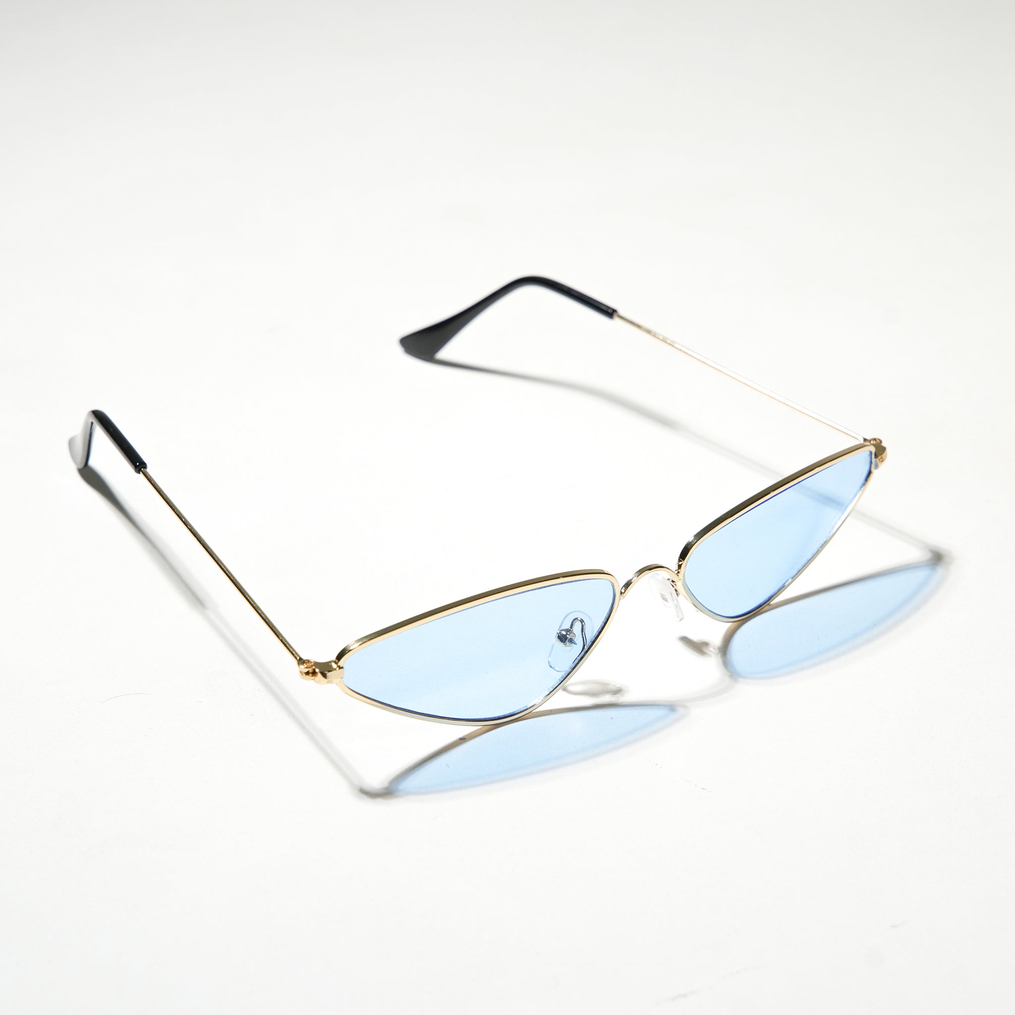 Chokore Triangular Cat-eye Metal Sunglasses (Blue & Gold)