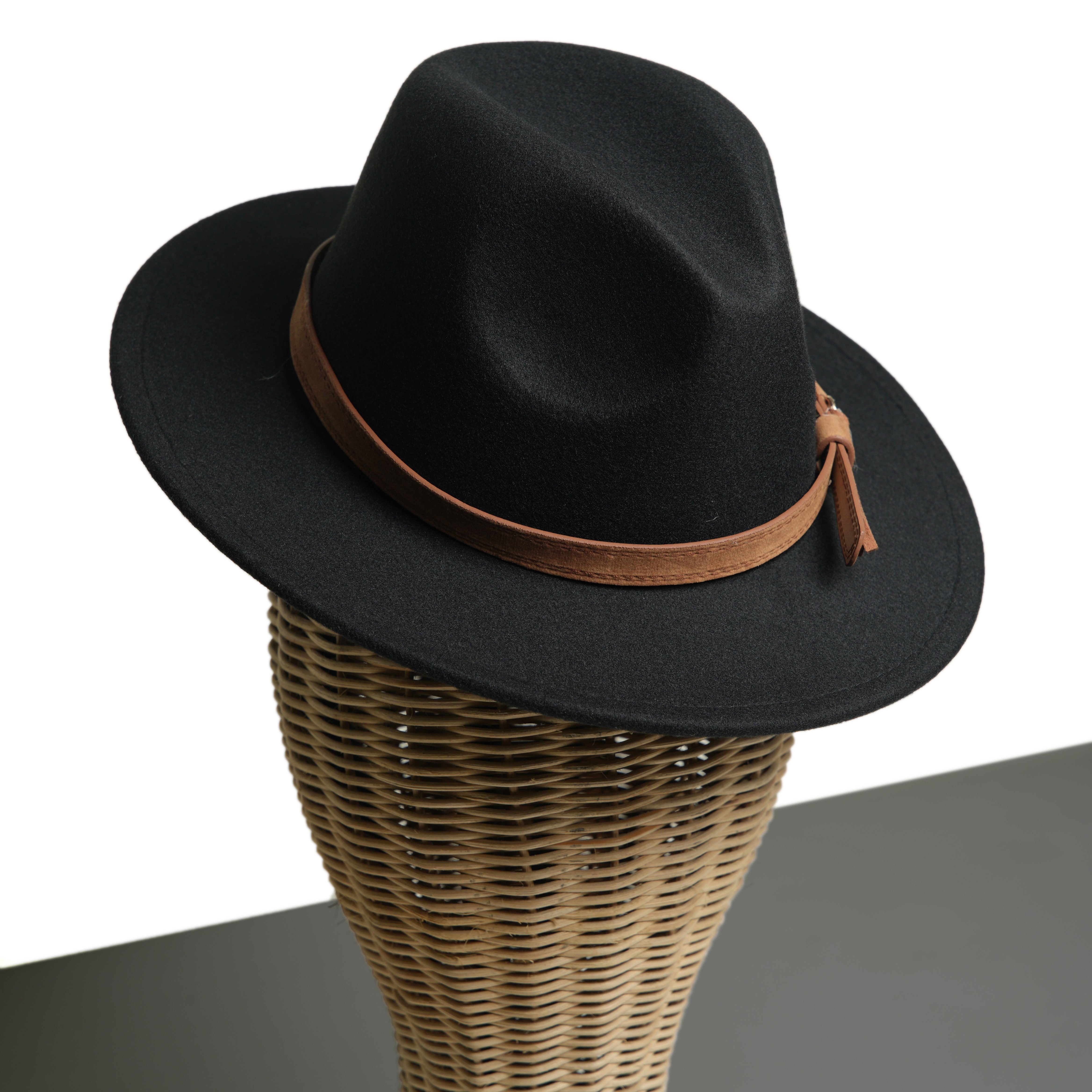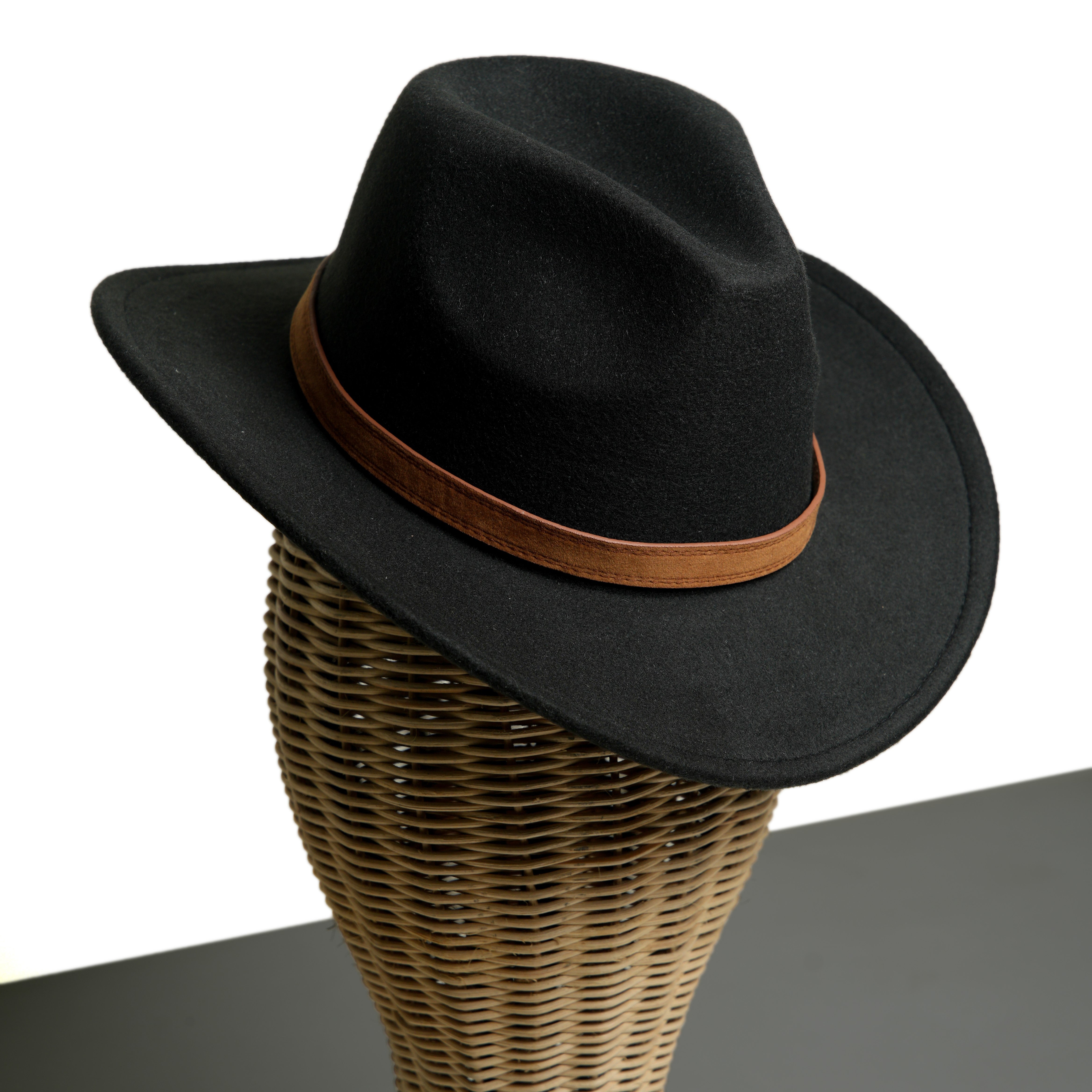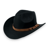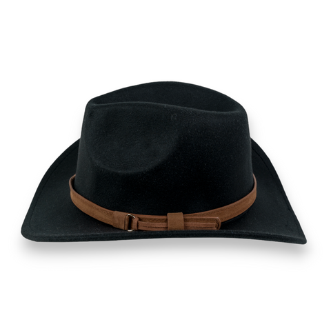 Chokore Pinched Cowboy Hat with PU Leather Belt (Black)