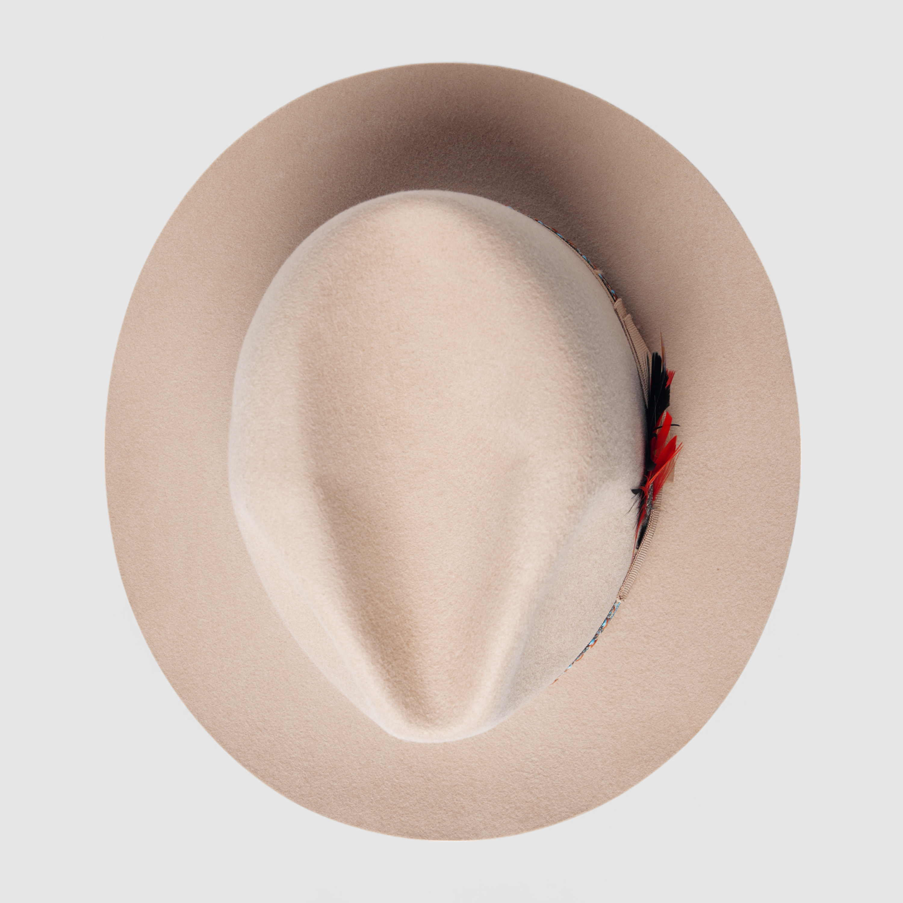 Chokore Classic Belle Fedora Hat with Feather Detail (Beige)