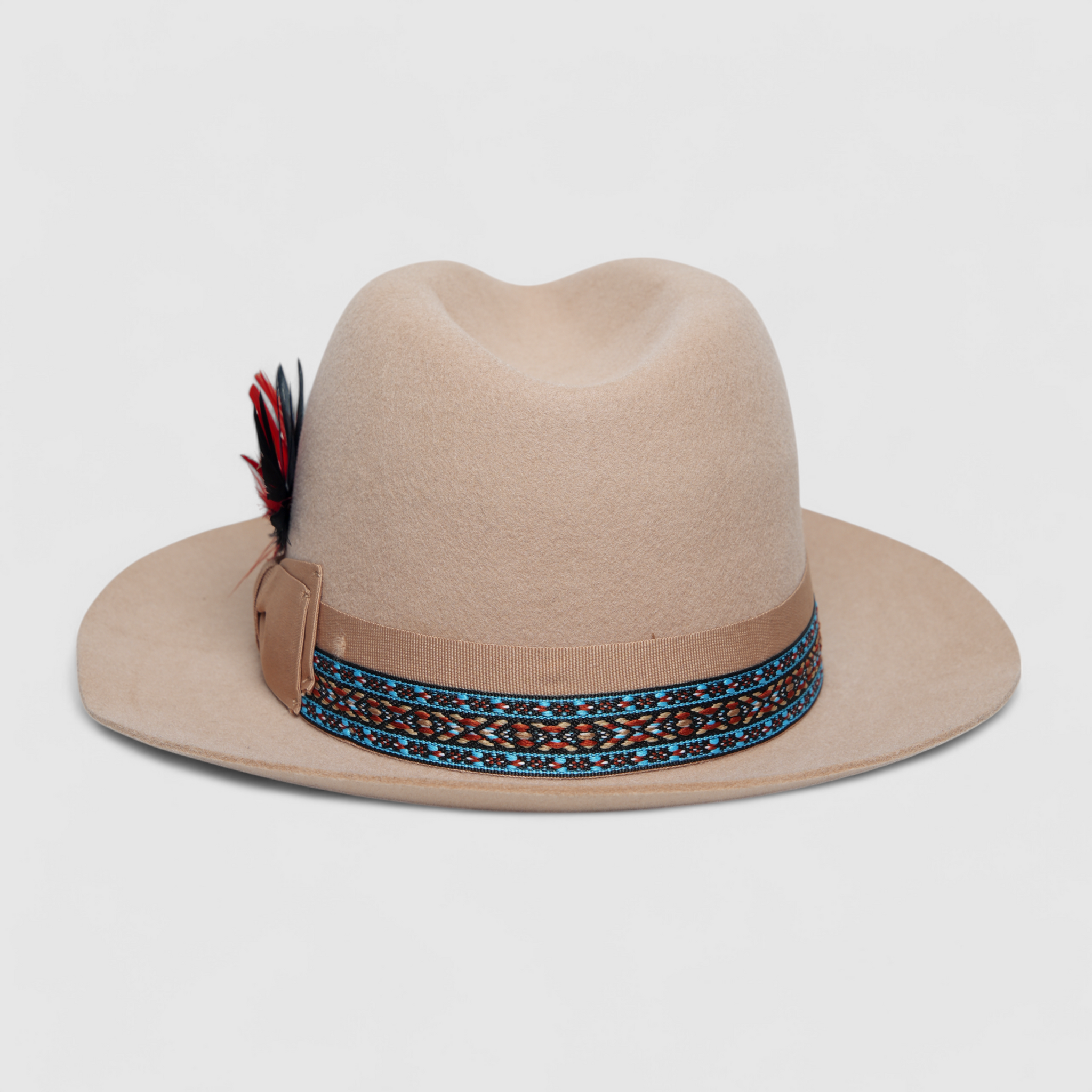 Introducing our exquisite Chokore Classic Belle Fedora Hat, meticulously crafted from 100% Australian wool for ultimate comfort and style. This handmade accessory features a classic teardrop crown that adds a touch of elegance to any outfit. The hat boasts a luxurious satin inner lining that enhances comfort, allowing you to wear it for extended periods without discomfort, it ensures a perfect fit and durability for long-term wear. The standout feature of this hat is the beautifully embroidered band, adorned with a charming bowtie design and colorful feathers, making it a hat, but a statement piece that reflects your unique style.