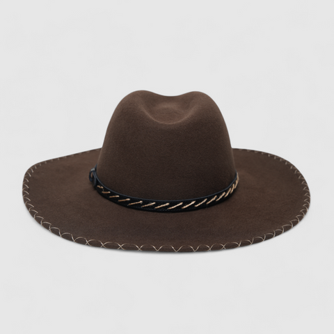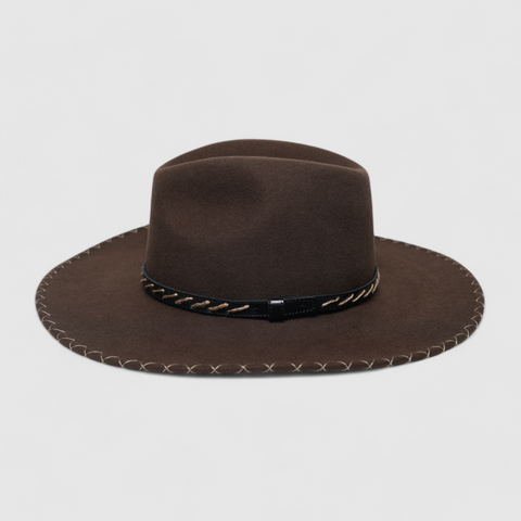 Elevate your style with our handmade Chokore Rustic Voyager Cowboy Hat, crafted from 100% Australian wool. This stunning brown hat is not only a fashion statement but also practical, designed for a comfortable fit during outdoor activities or social events. The binding-edge brim adds a touch of elegance, making it perfect for festivals, parties, or simply a day out in the sun.