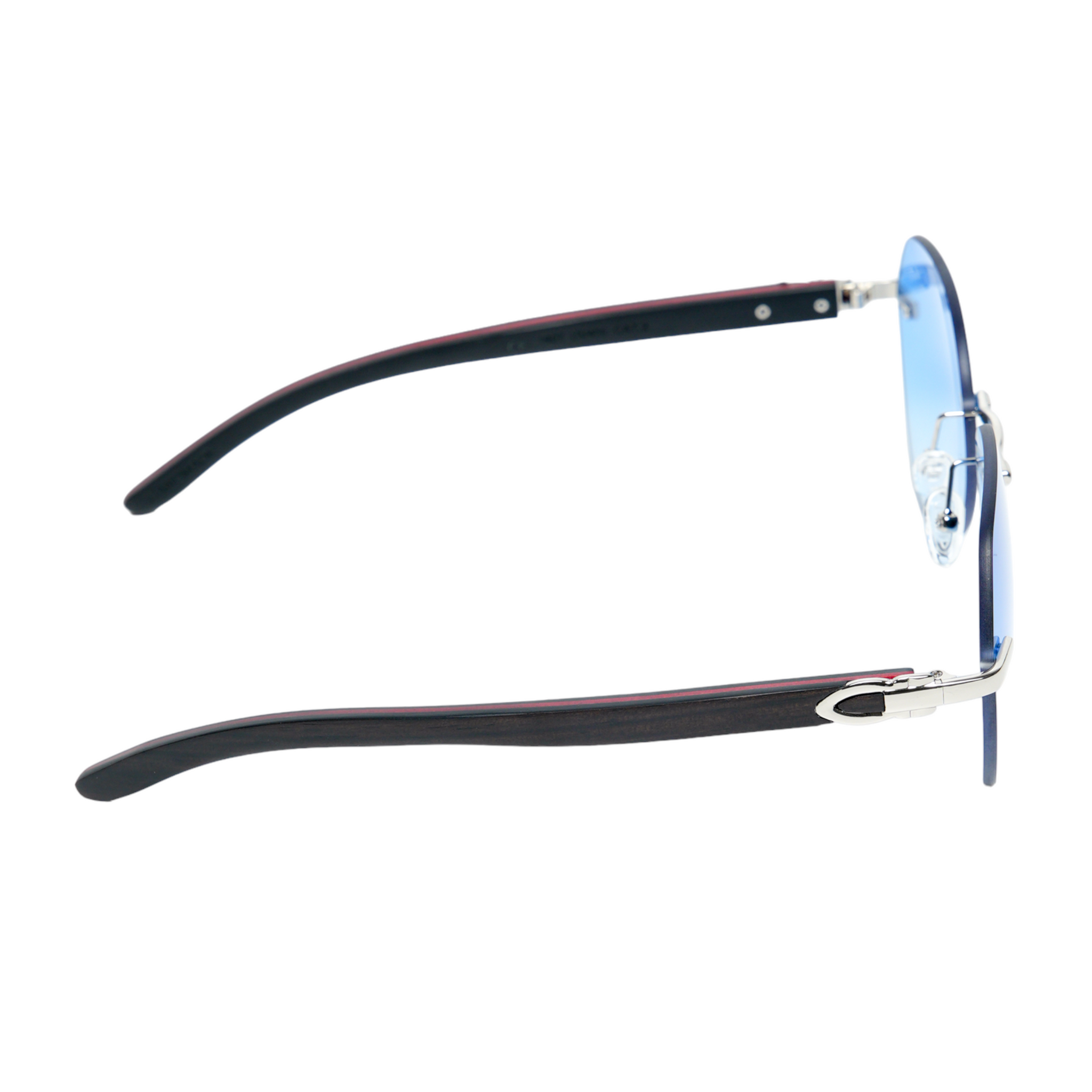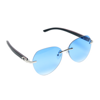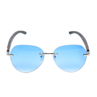 Chokore Rimless Oversized Sunglasses with Wooden Temple (Blue)