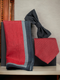 - Package contains: " 1 x Pinpoint Necktie, 1 x Garnet Pocket Square, 1 x Black Bow Tie "