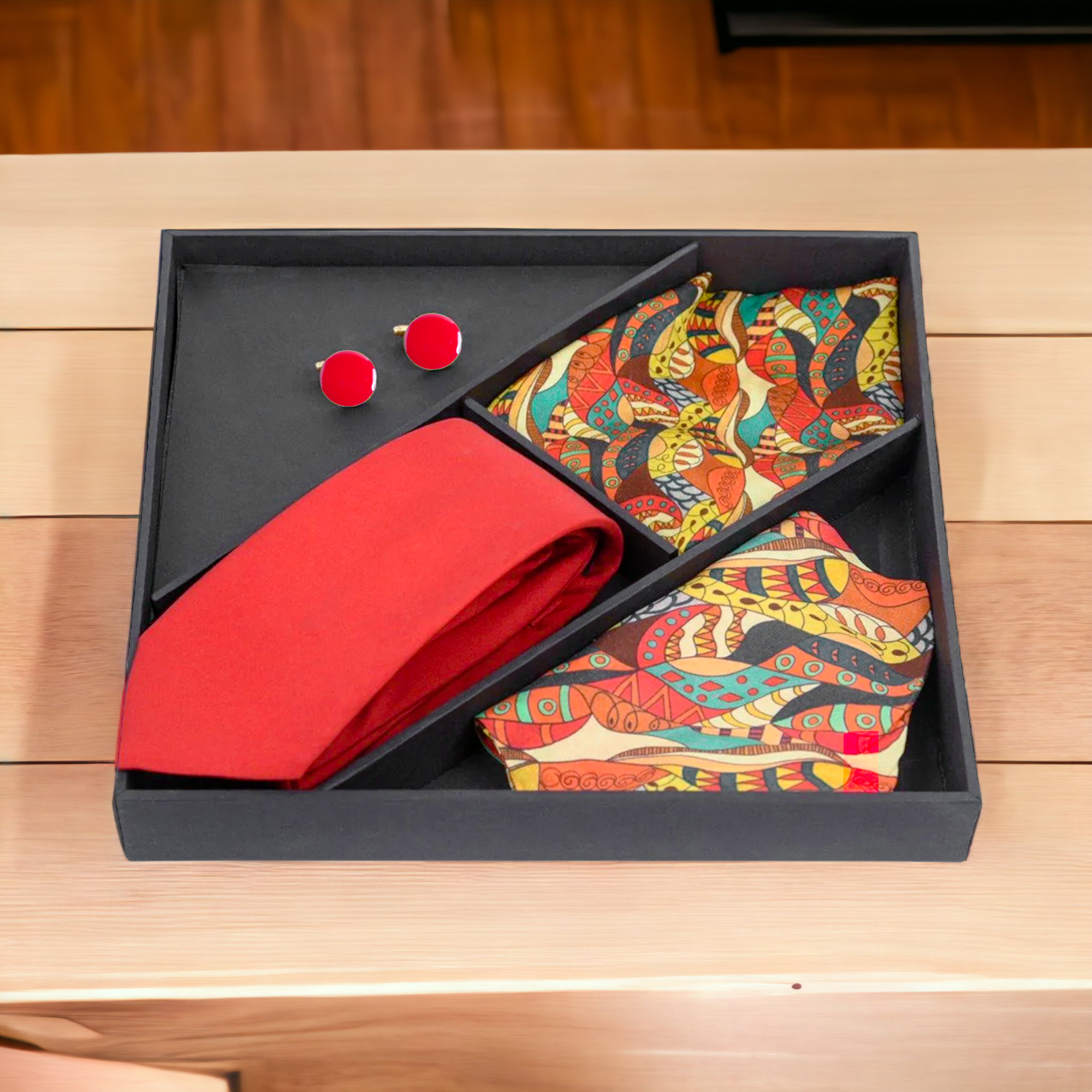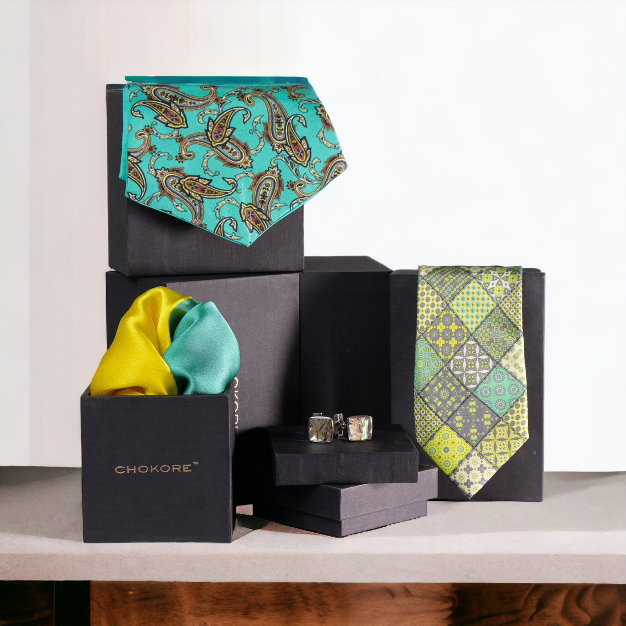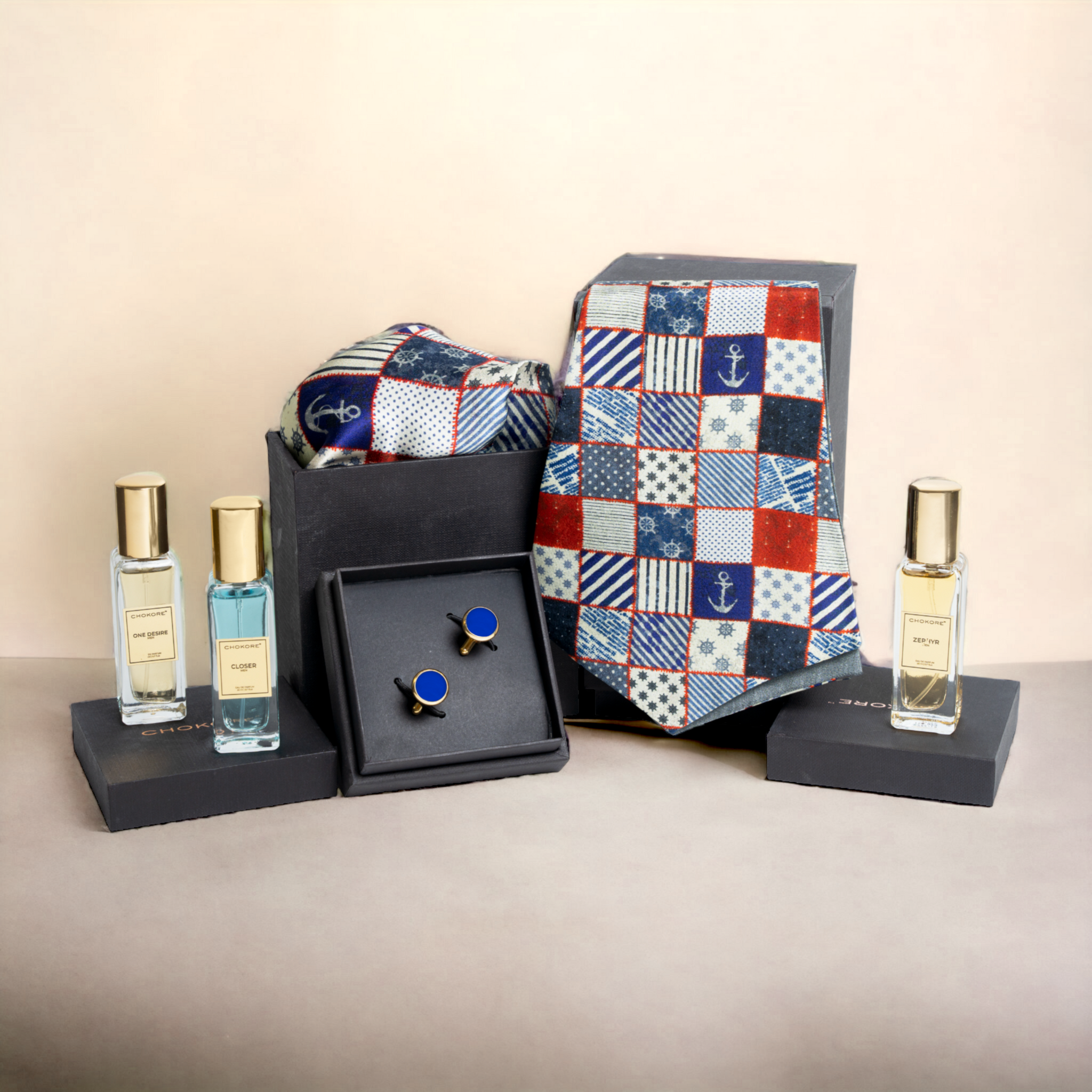 Chokore Special 4-in-1 Gift Set for Him (Pocket Square, Necktie, Perfume Combo, & Cufflinks)