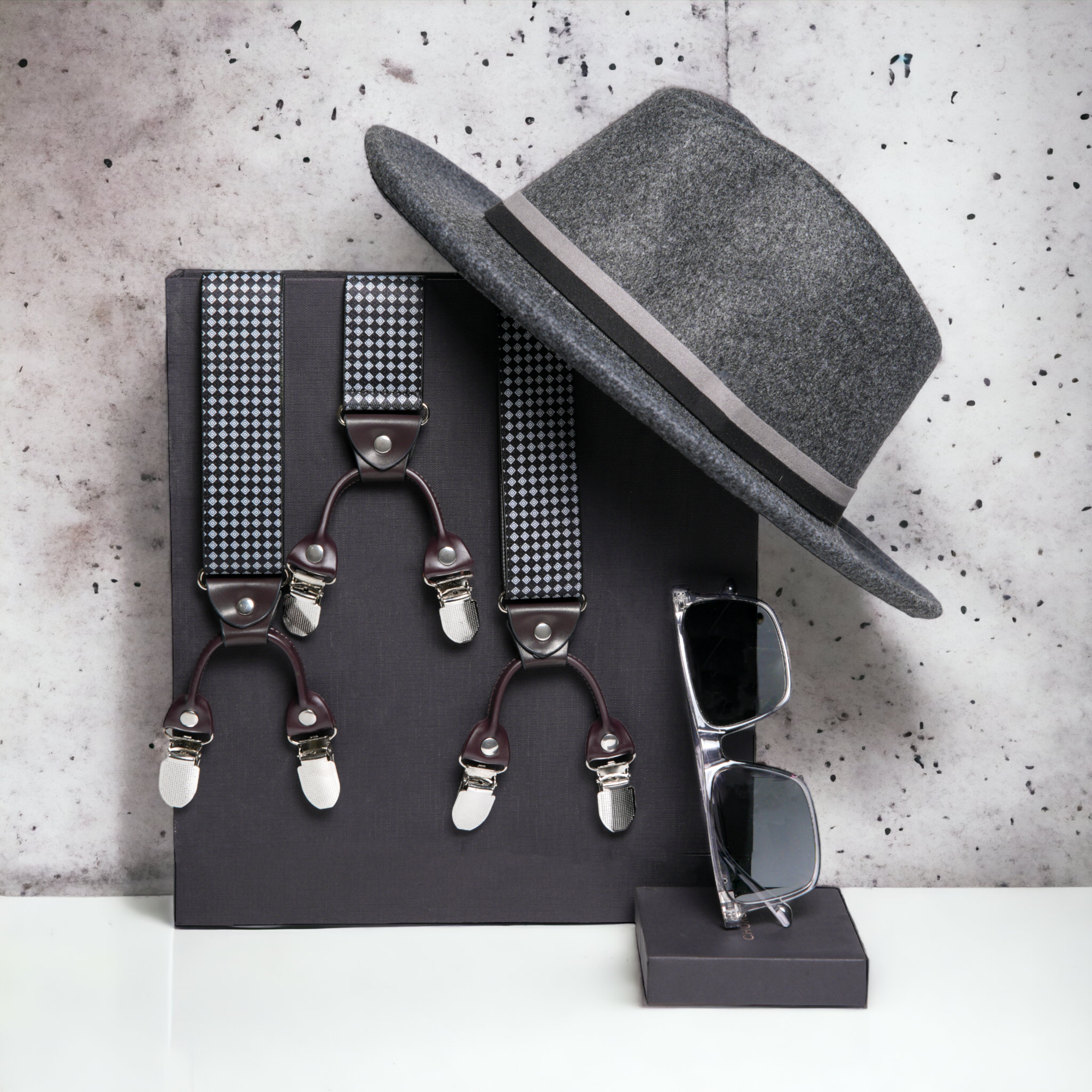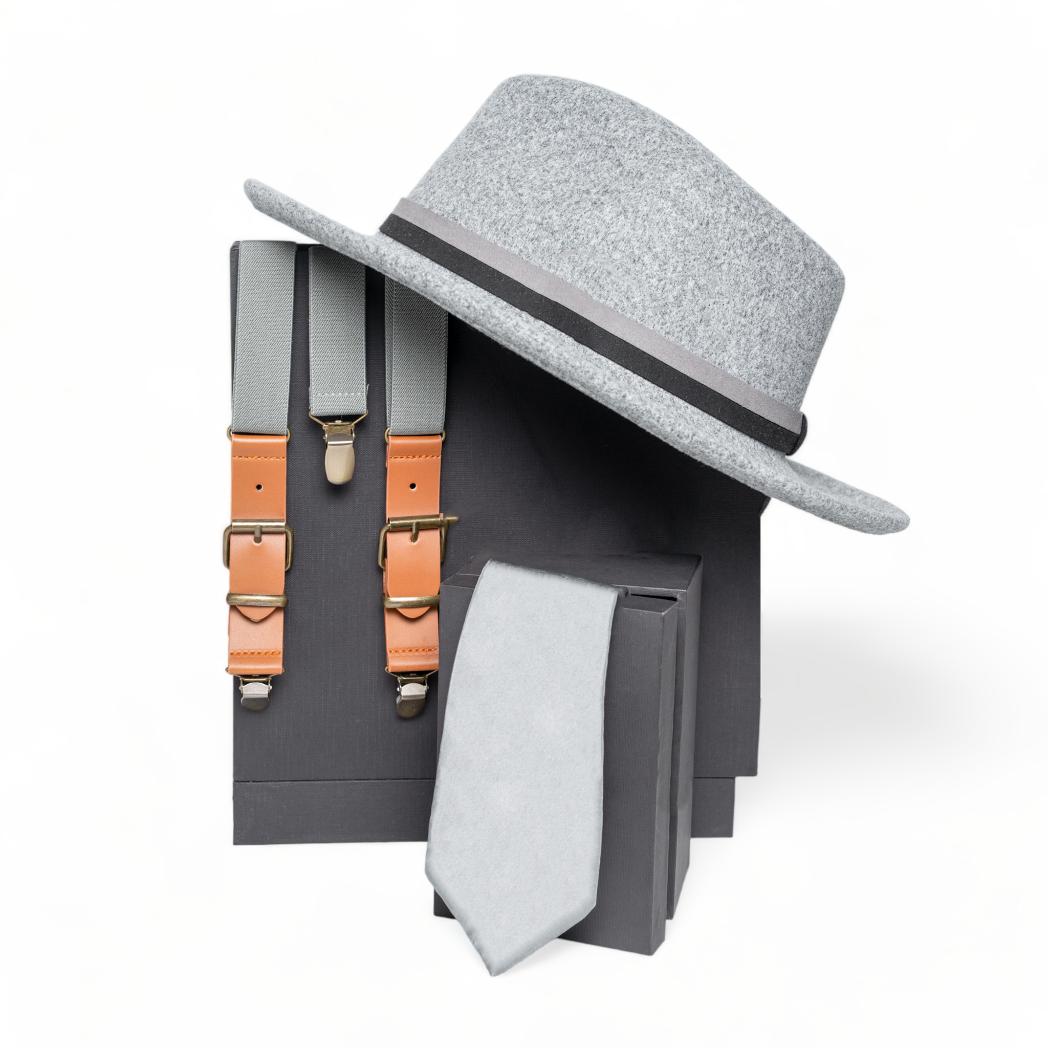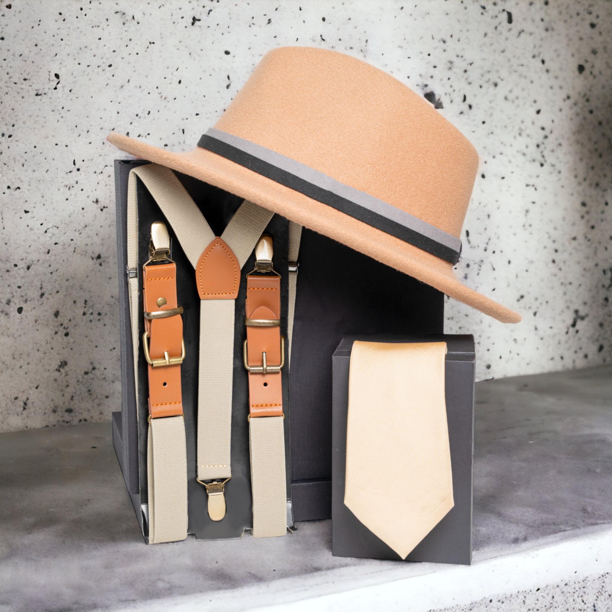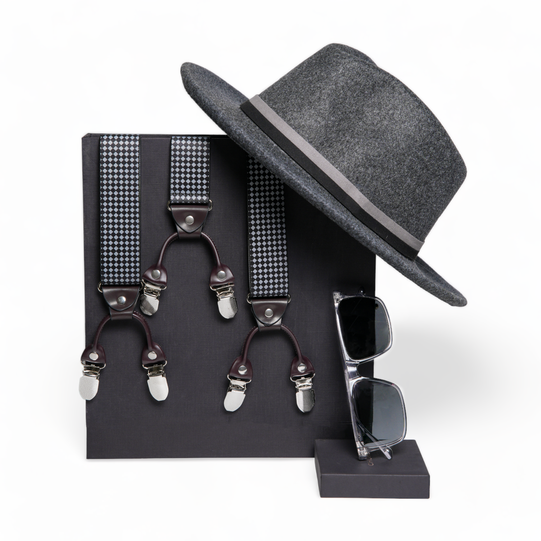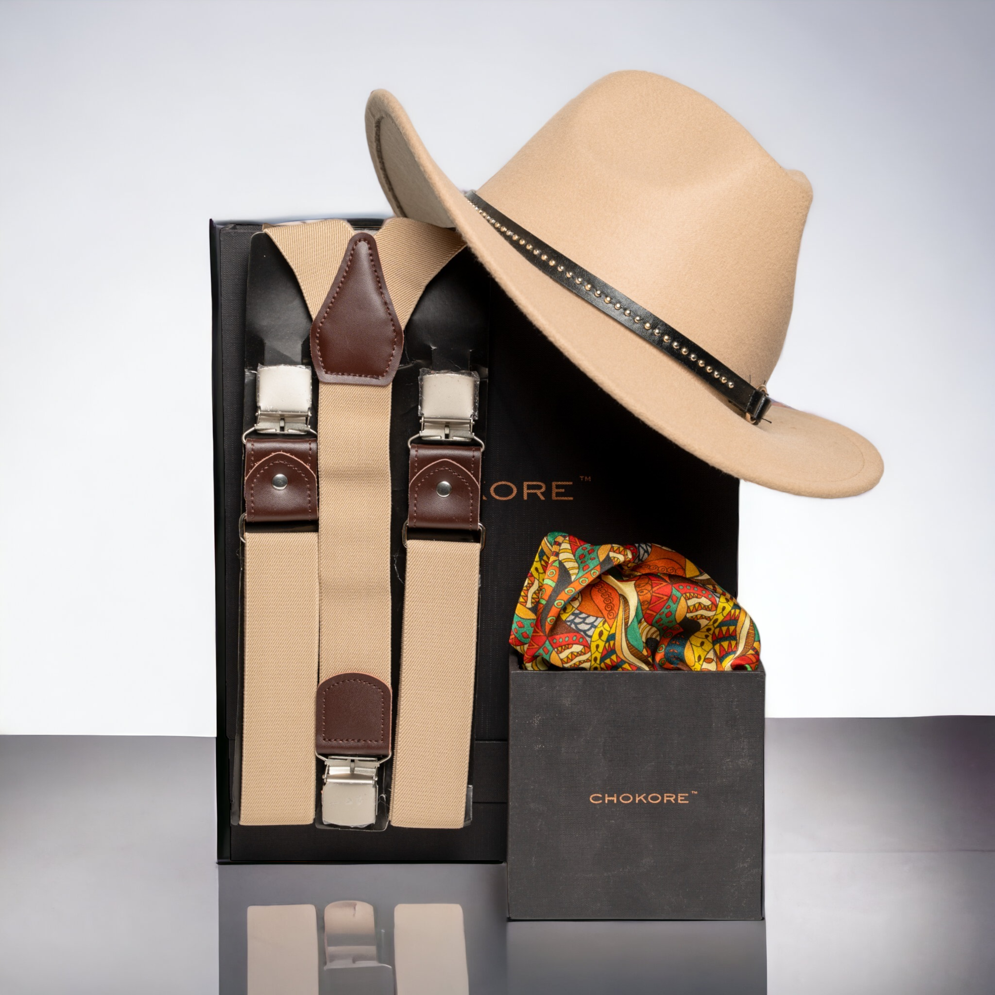 Chokore Special 3-in-1 Gift Set for Him (Y-shaped Suspenders, Fedora Hat, & Leather Belt)