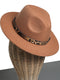 - PRACTICALITY: Fedora hat with leopard belt, designed for practicality, with a wide brim that shields you from scorching heat. Comes with a string inside for better fitting.