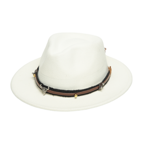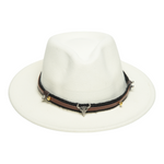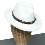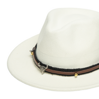 Step into the timeless allure of the American West with our Fedora featuring a distinctive oxhead belt!