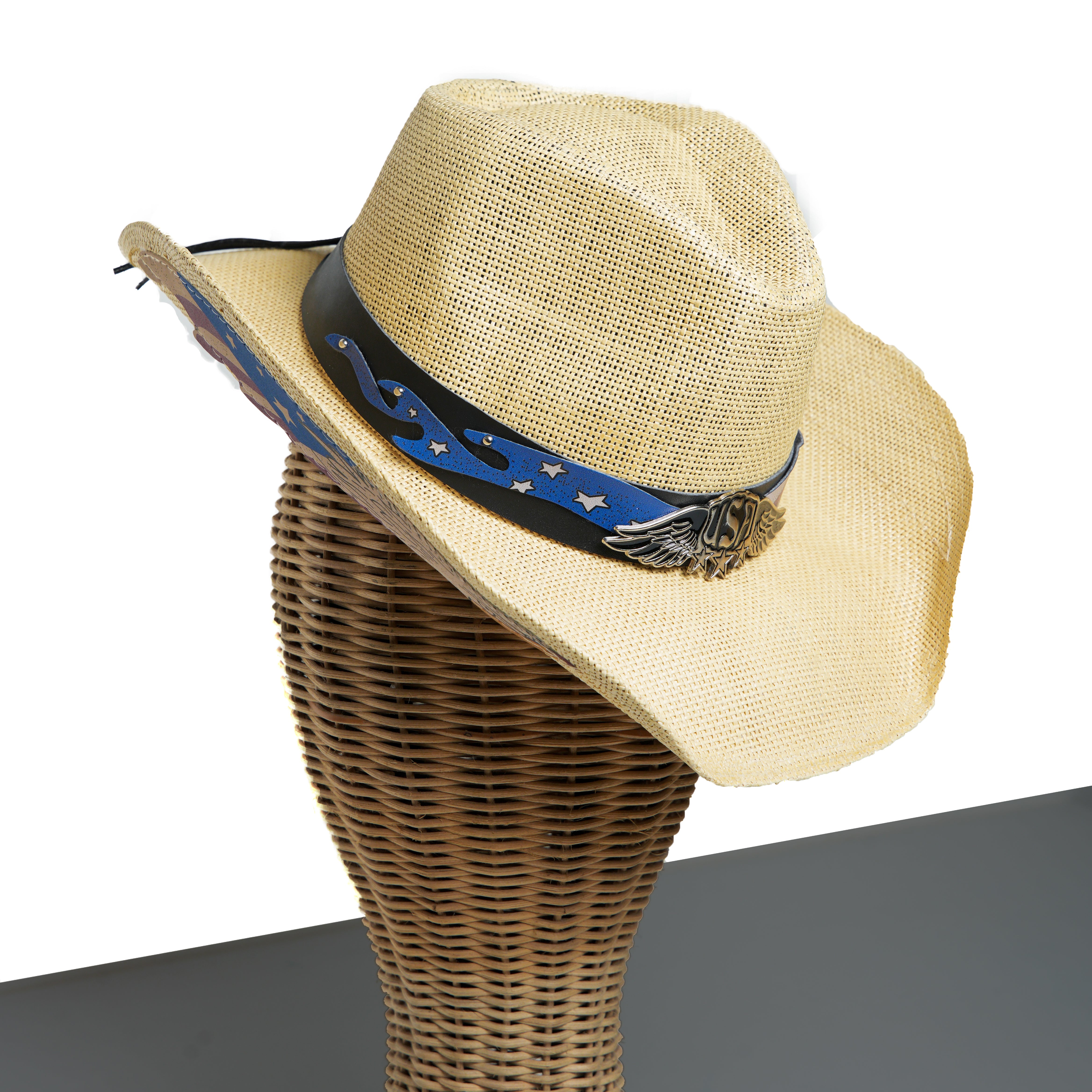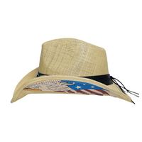 Chokore Handcrafted Straw Cowboy Hat with American Flag Detail (Beige)