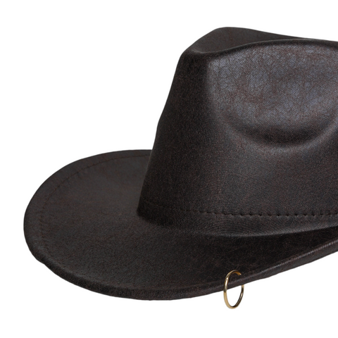 Ride into style with the Chokore Leather Cowboy Hat with Metal Ring Details. Crafted from premium leather, this hat features a unique buckle ring design that adds a rugged, Western flair. Perfect for outdoor adventures or adding a cowboy touch to your look, this hat combines durability with bold style.