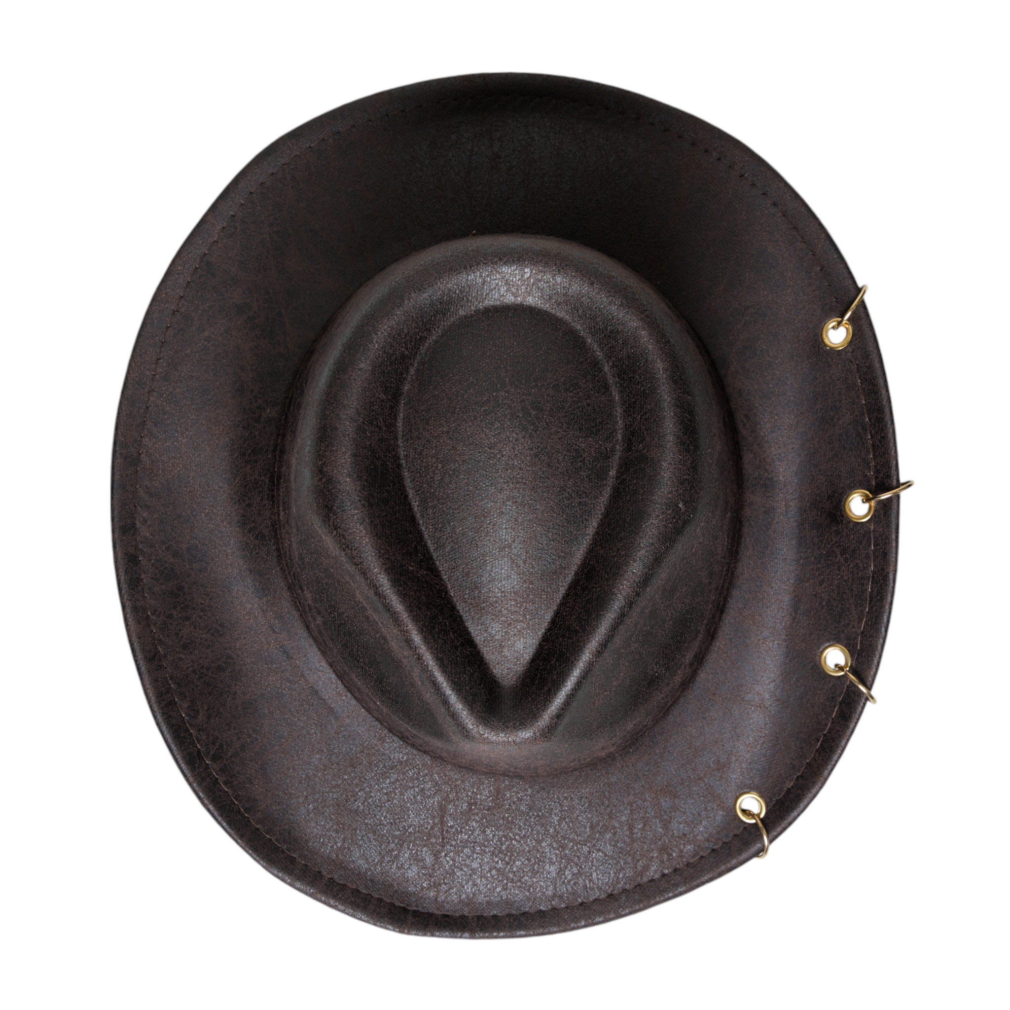 Chokore Leather Cowboy Hat with Metal Ring Details (Dark Brown)