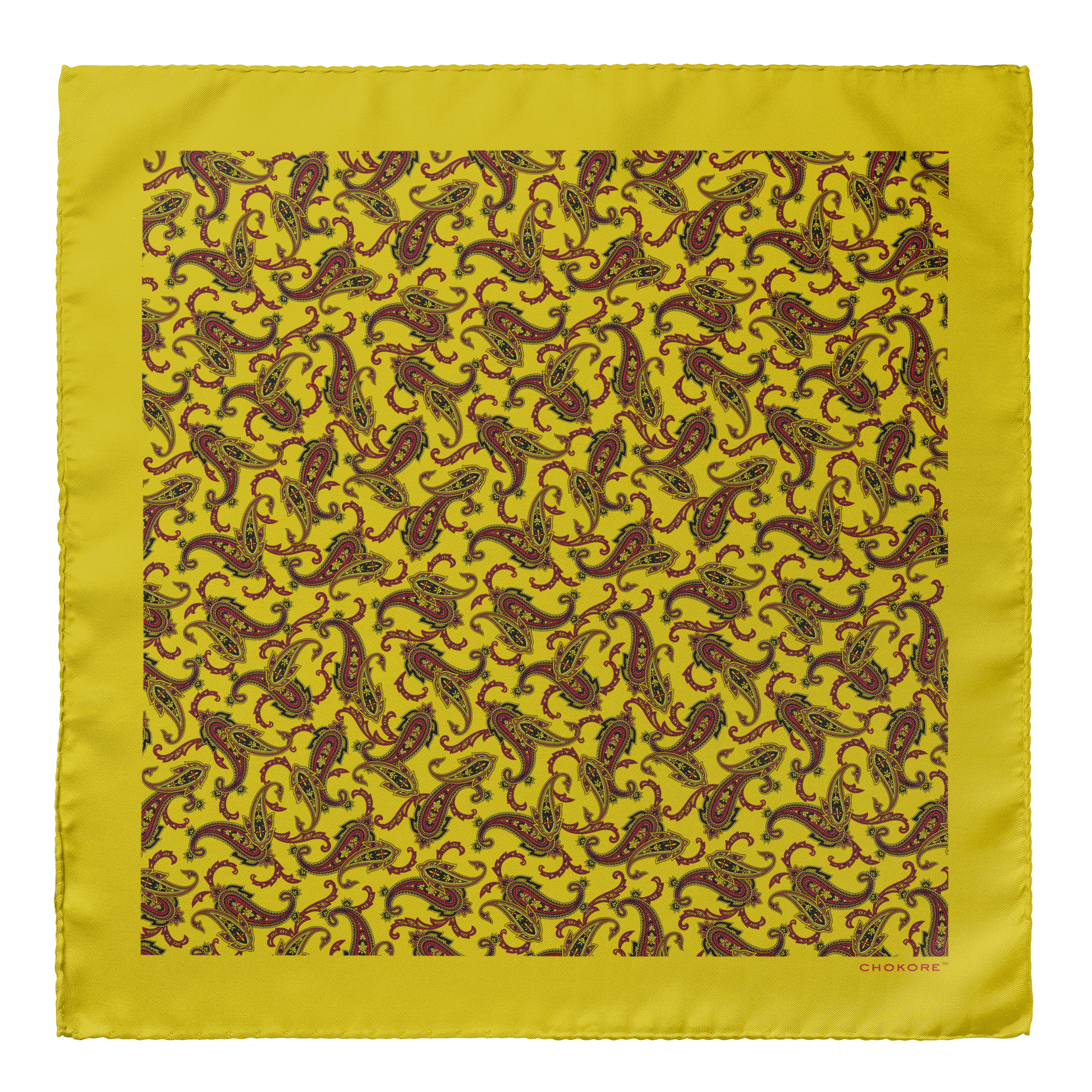 Paisley has been a popular motif in fashion for centuries. The seed-like shape is a symbol of life and eternity. It is an ornamental design that can add intensity to your plain suit. Feel the presence of paisley motifs in this Indian design inspired burgundy and yellow pocket square from Chokore.