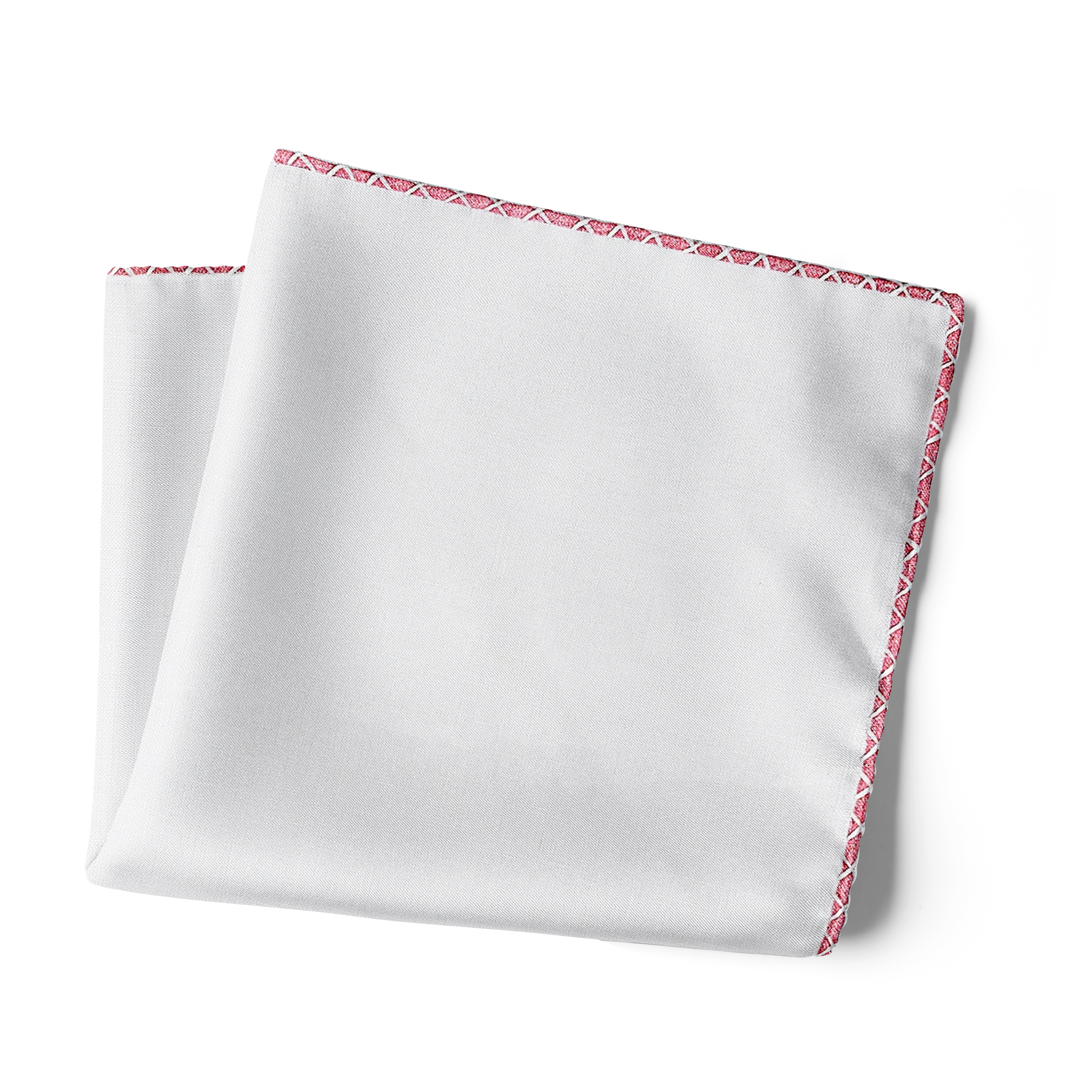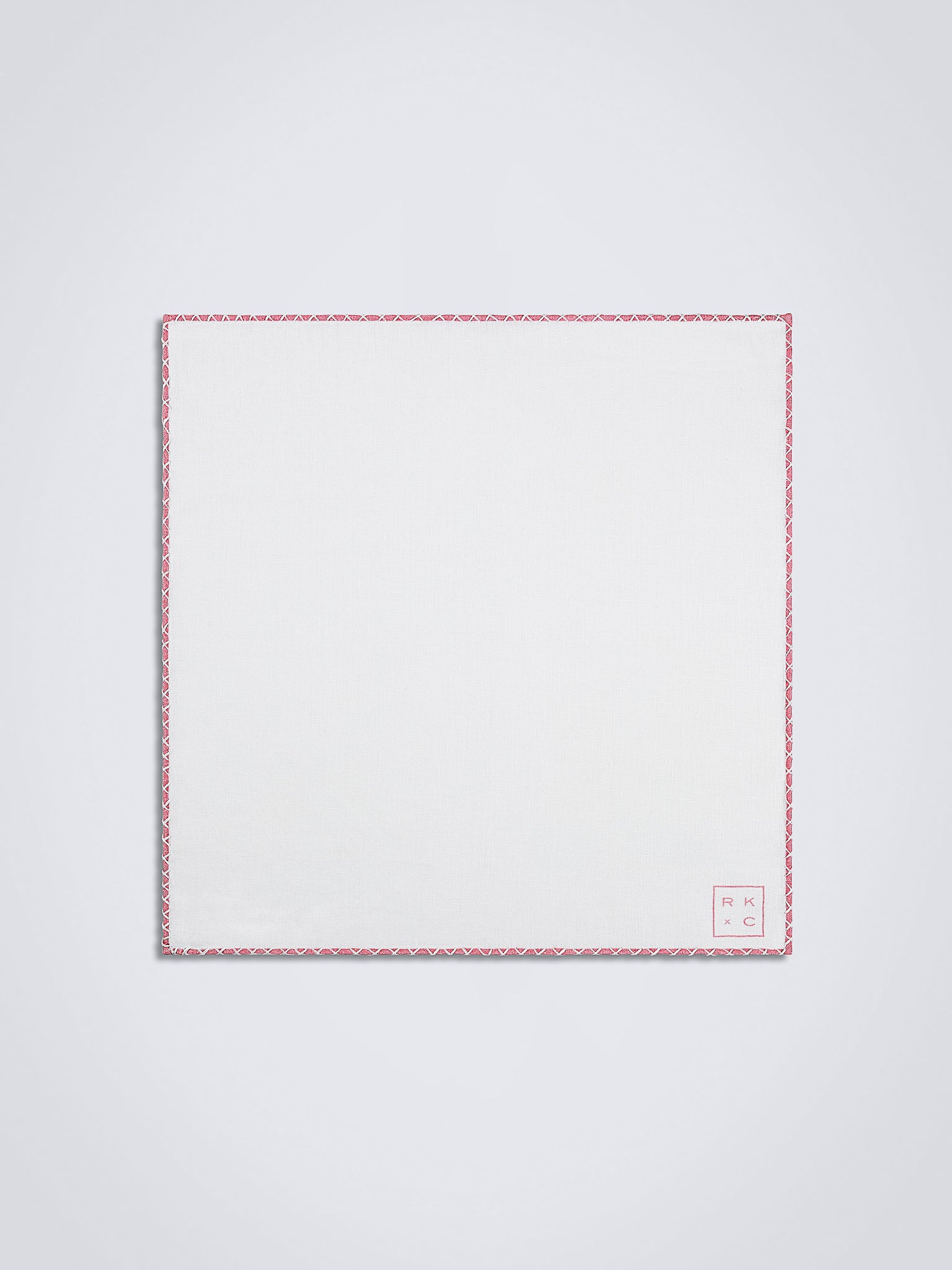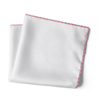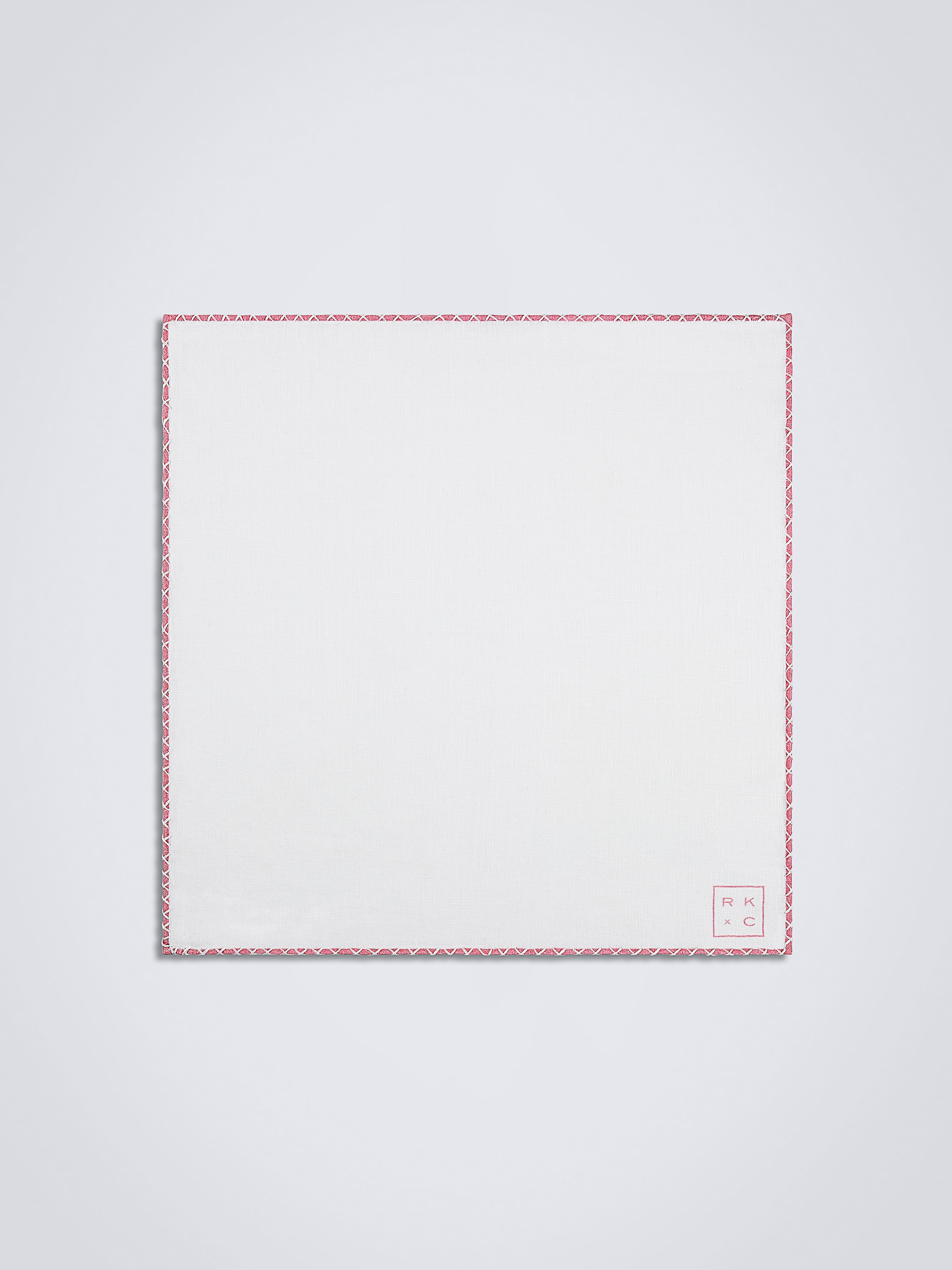 Crafted of pure white linen with hand-rolled pink edges and finished with delicate hand-stitching in white.