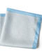 Perfect for when a “smart casual” dress code is the order of the day. This masculine plaid pattern in blue has a matching solid border and can be arranged to display only the checks, or also the solid edges. A sharp punctuation point to a smart jacket.