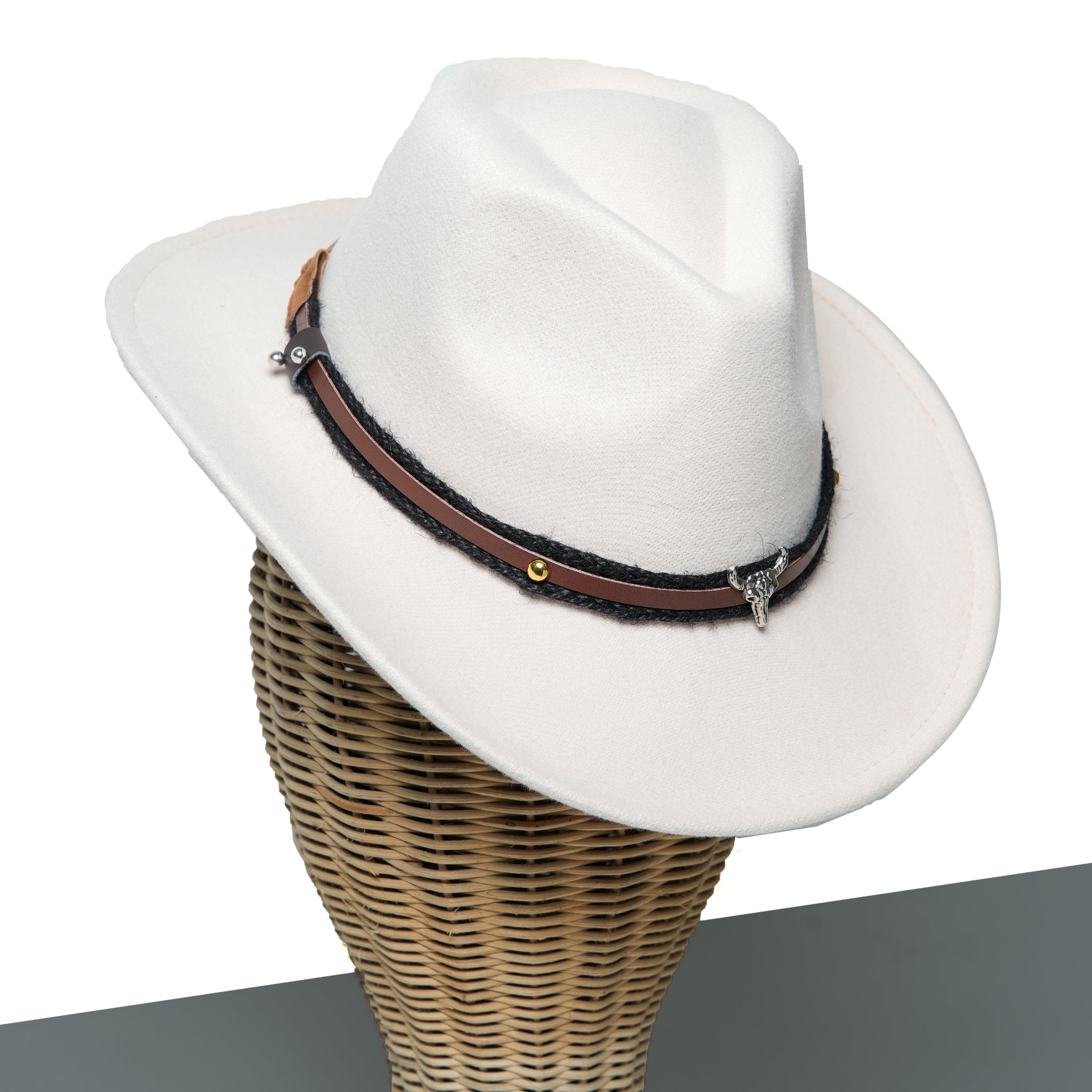 Chokore Cowboy Hat with Ox Head Belt (Beige)