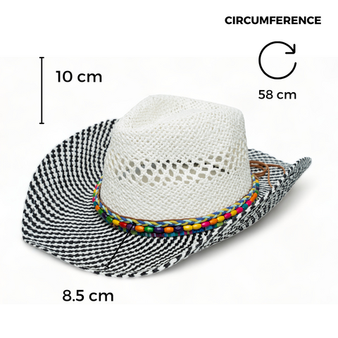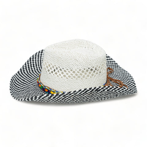 Chokore Handcrafted Straw Cowboy Hat (Black & White)