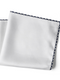 Crafted of pure white linen with hand-rolled navy edges and finished with delicate hand-stitching in white.