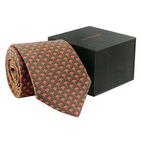 Two of the most classic colours come together to design this tie. The fierce strength of red and the subtle effect of grey together make this tie a must-have. Crafted in pure twill silk with petal motifs on it, this tie can be easily paired with a light-coloured jacket. You could add a plain grey or red pocket square to enhance the overall look.