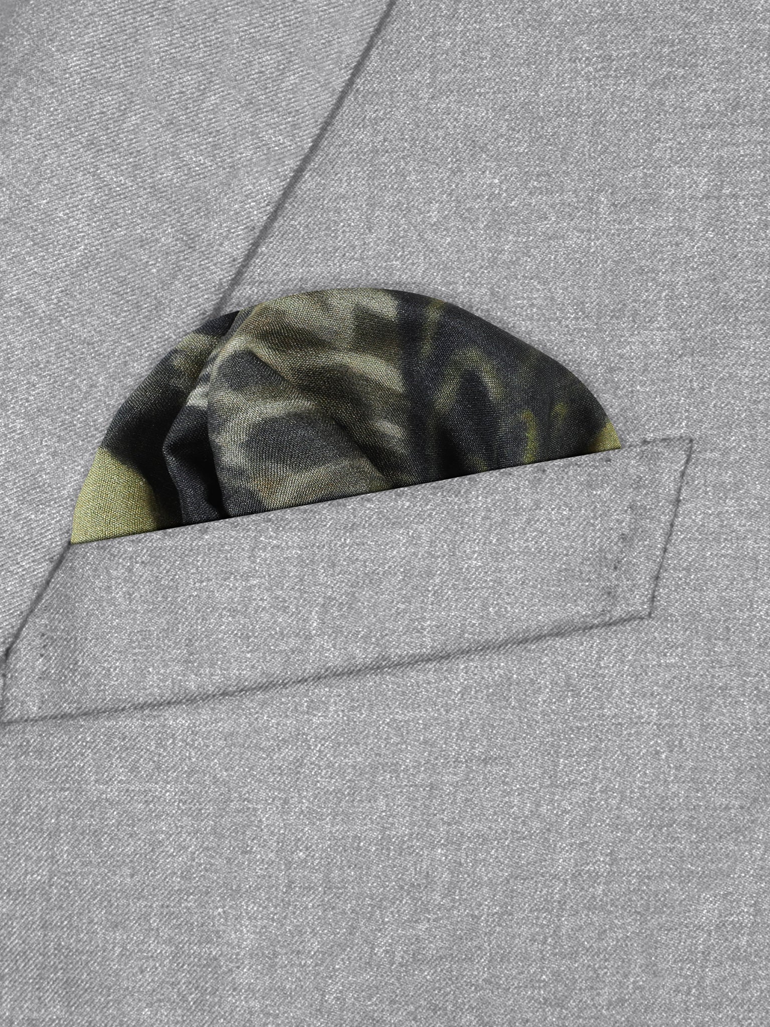 • Sizing note: The proportions of our eri silk and linen pocket squares are intentionally generous (18” x 18” for eri silk and 16 "x 16" for linen). They’ve been designed to fill up the space, retain their arrangement and to minimize the possibility of slipping down into the pocket.