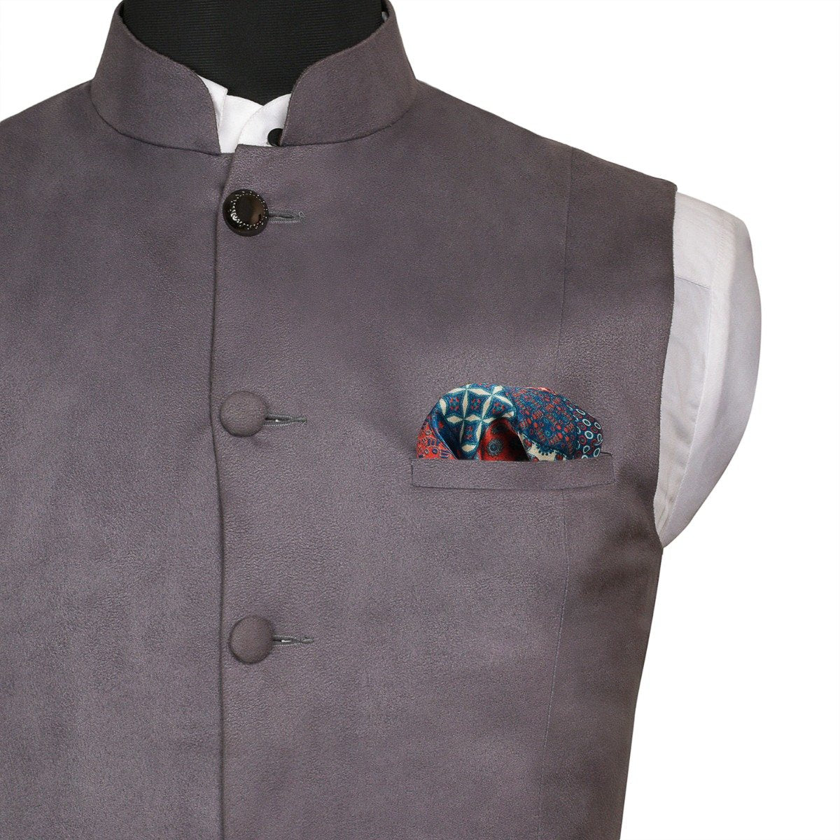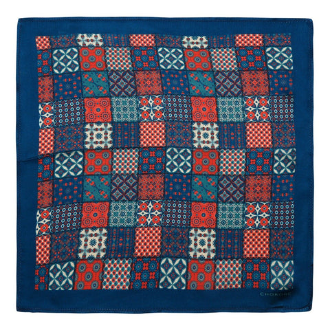 Chokore Blue & Red Silk Pocket Square - Indian At Heart line