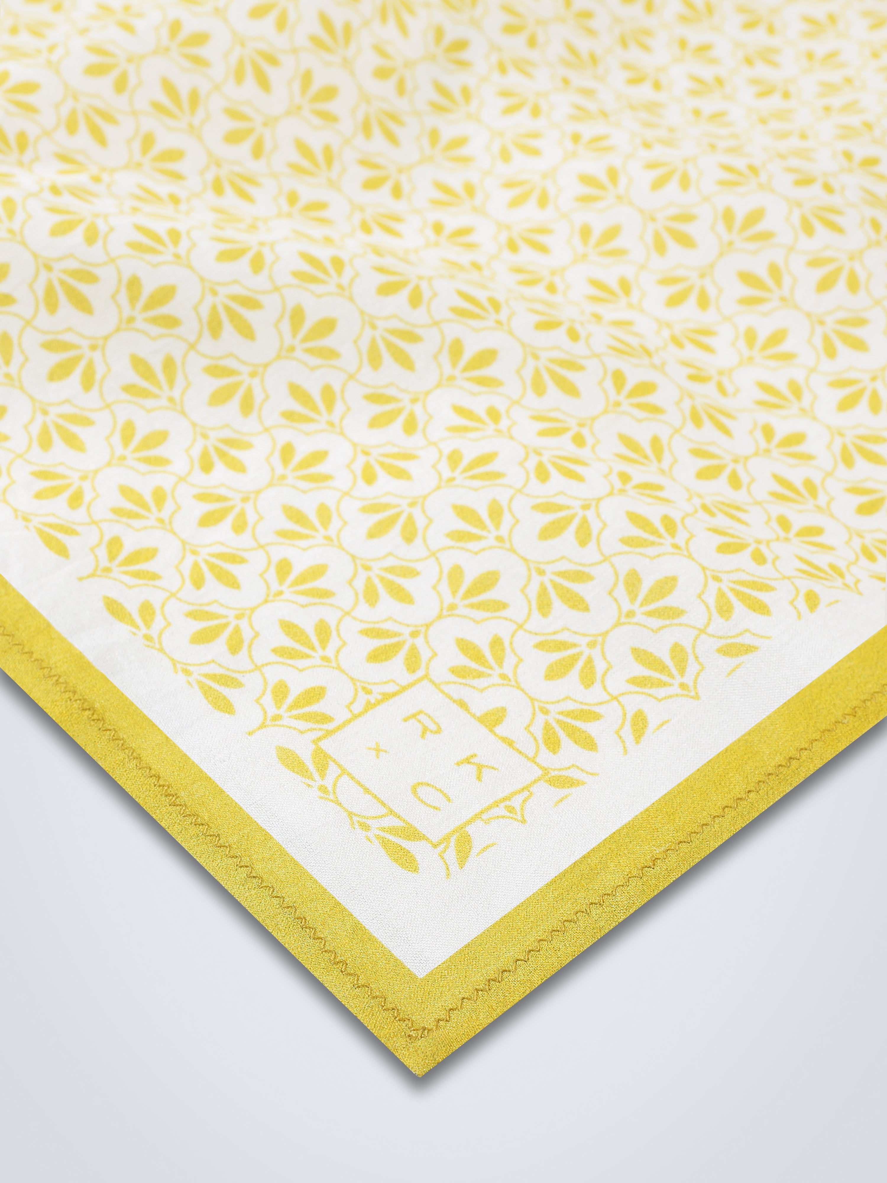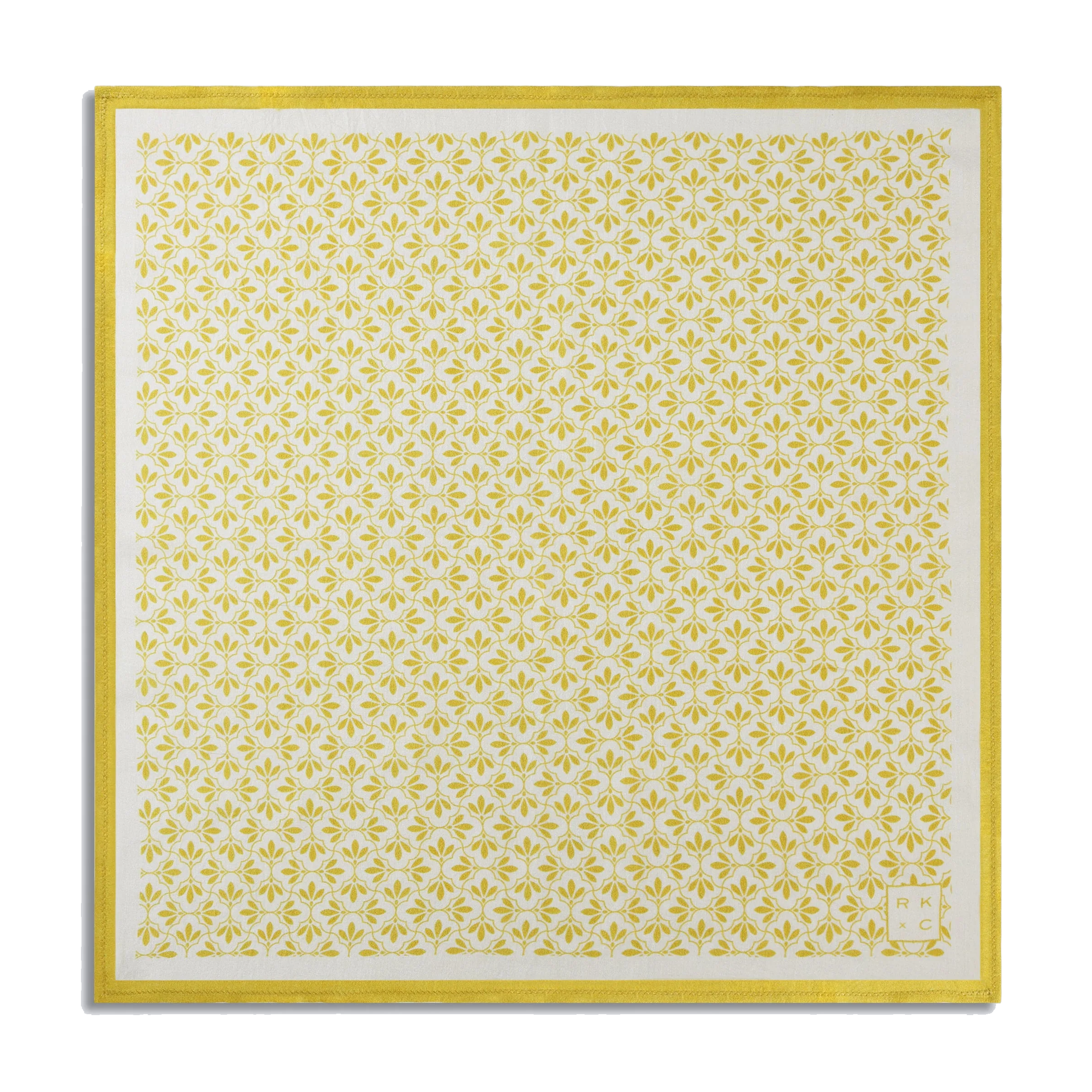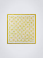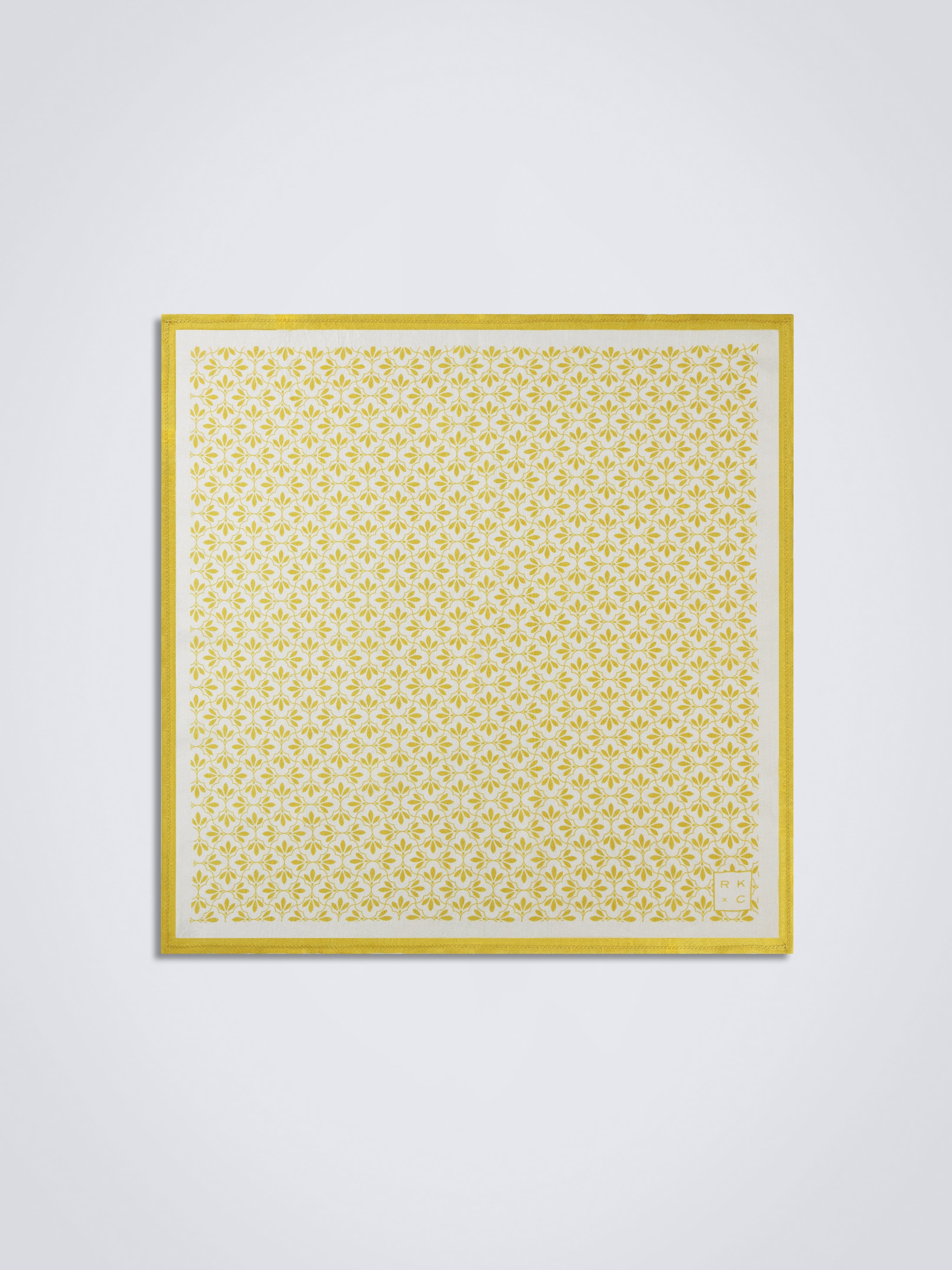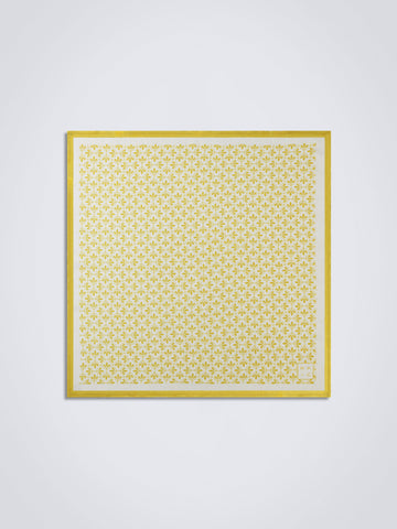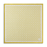 Yellow lattice design with a matching solid border on an off-white background. Crafted of pure eri silk.