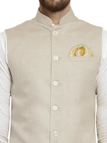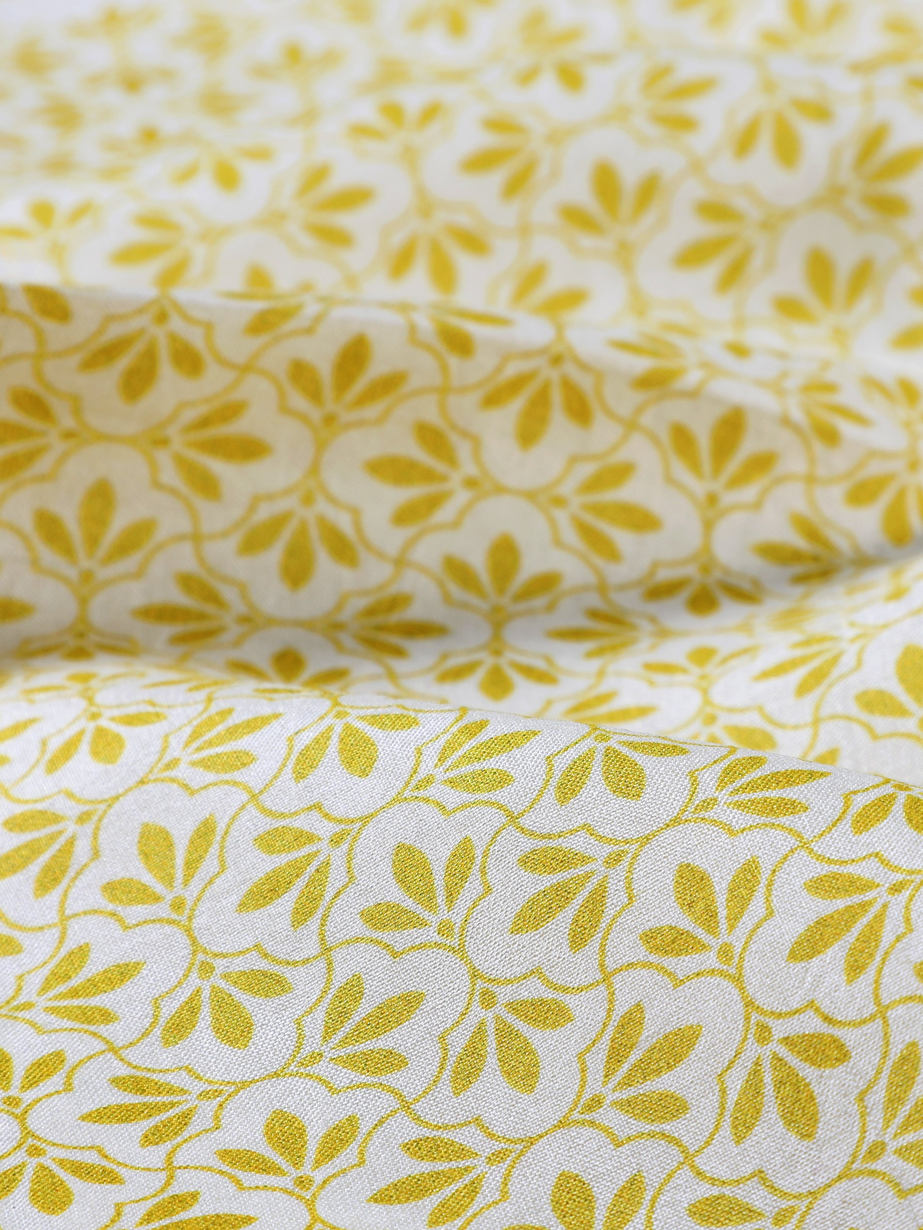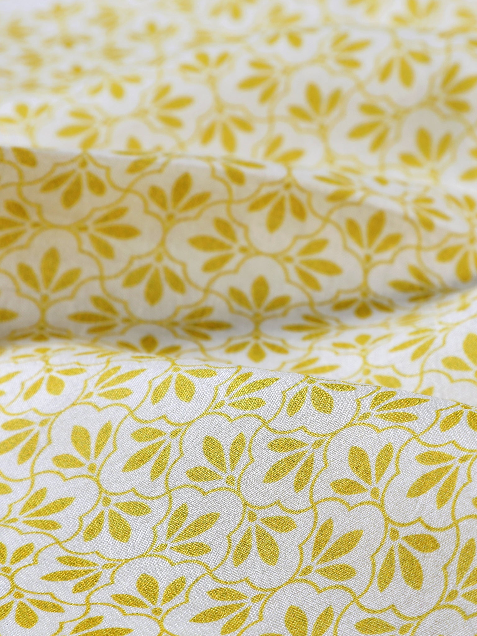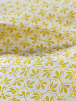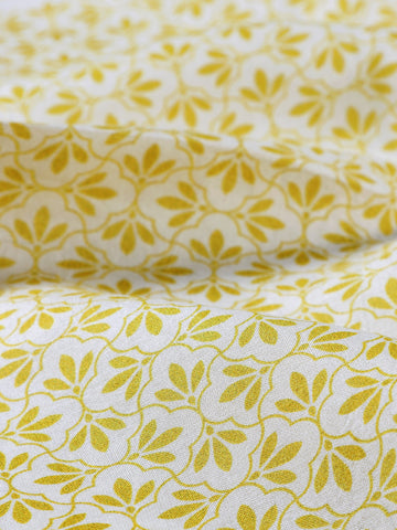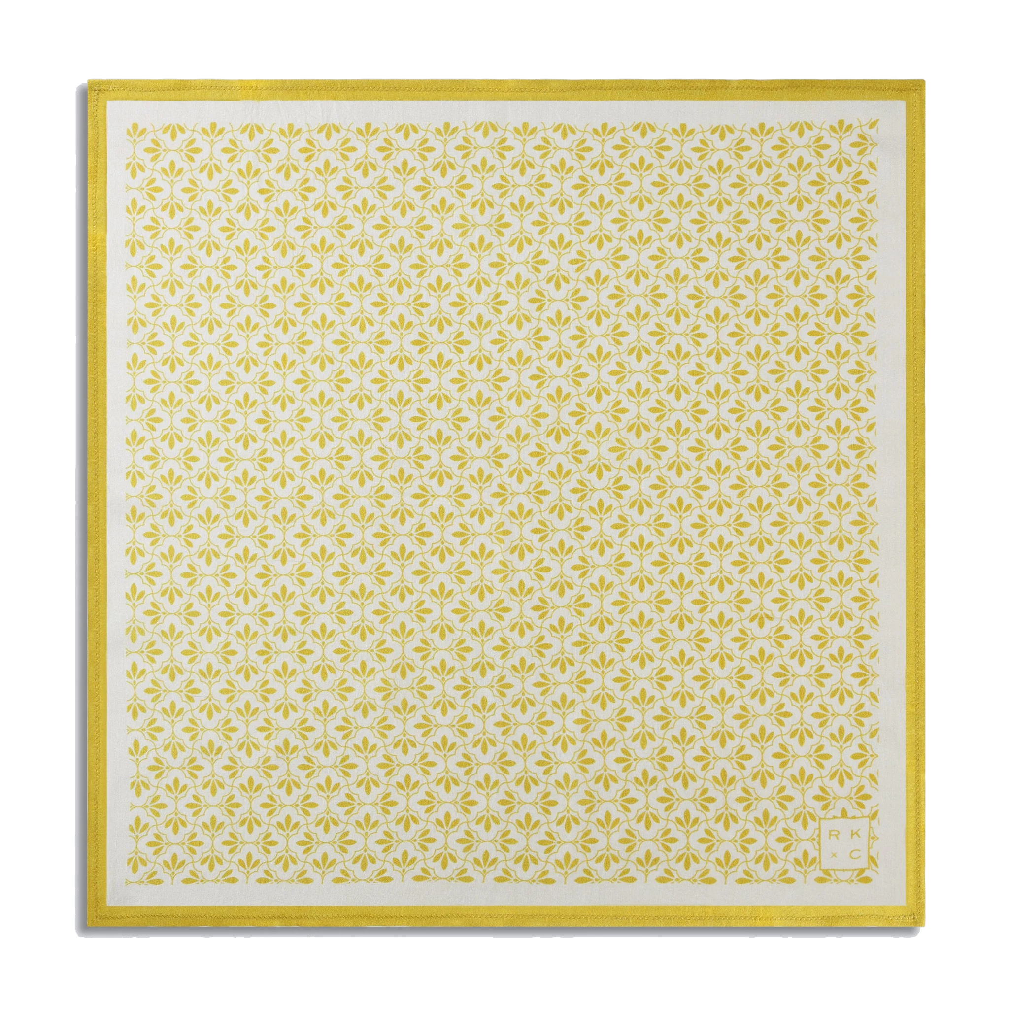 Yellow lattice design with a matching solid border on an off-white background. Crafted of pure eri silk.