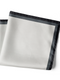 Here we depict the beauty of quartz in a pewter and onyx setting (solid off-white with a grey and black border). One could arrange this pocket square to display either just the main solid colour or also the two-toned striped edges.