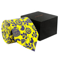 This tie, presented in yellow and navy blue with bird motifs is an absolute must-have for an informal occasion. Wearing it to a meeting with a navy blue shirt and a dark-coloured jacket can just be a trend-setter with the design expressing freedom and peace. What’s the wait for then? Get yourself this tie, crafted in pure twill silk and designed to make your look elegant.
