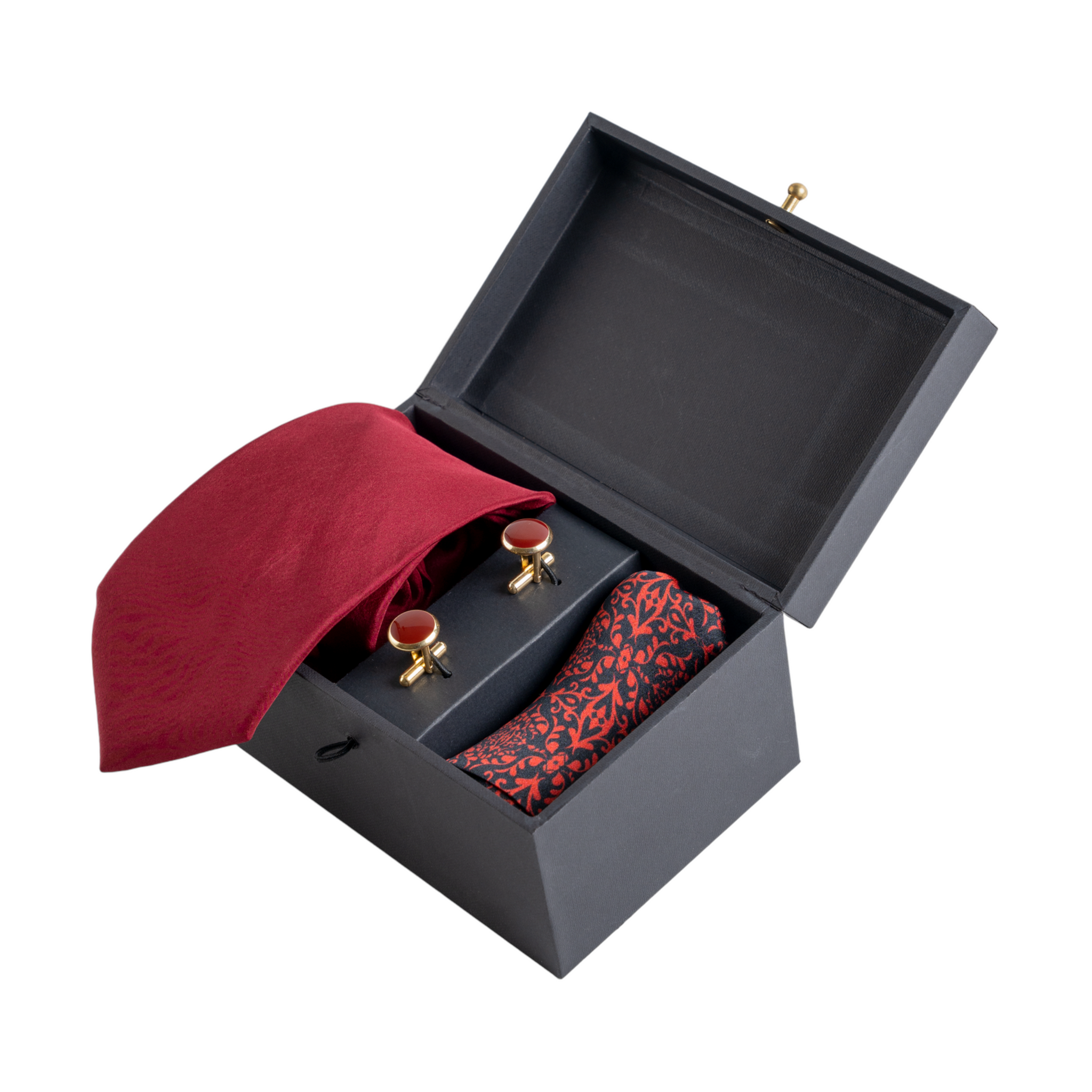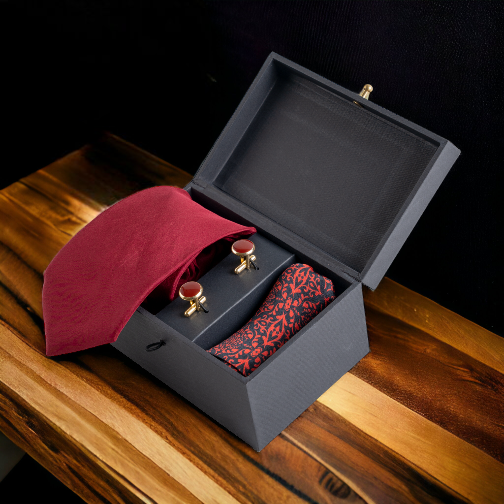 Chokore Special 4-in-1 Gift Set for Him (Pocket Square, Necktie, Perfume Combo, & Cufflinks)