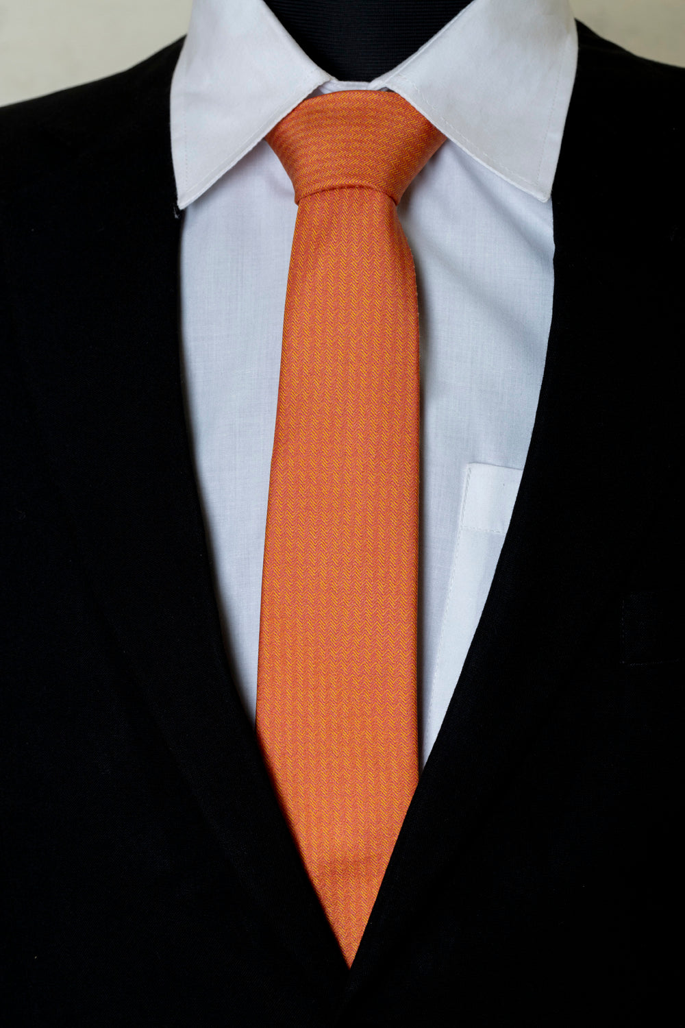 Chokore Orange Herringbone Silk Necktie - Indian at Heart Collection