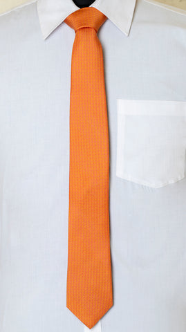 This orange color tie is specially crafted in twill silk with a wavy detailed design, to add elegance and grace to your personality. Pair it with any plain or printed light-coloured shirt and see how it elevates your style.
