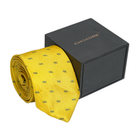 Elevate your style with our Yellow Leaf Silk Necktie. Crafted in 100% pure silk, it features a minimal leaf pattern in vibrant yellow. This necktie effortlessly adds a touch of subtle, nature-inspired sophistication to your ensemble. Pair it with any shirt for a fresh and polished look. It’s more than an accessory; it's a statement piece that brings a breath of fresh air to your wardrobe. Knot up this yellow leaf silk necktie and let your style blossom with every wear.