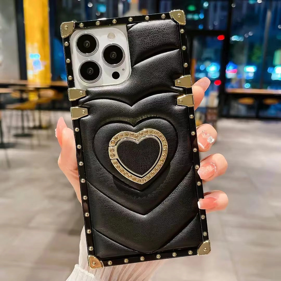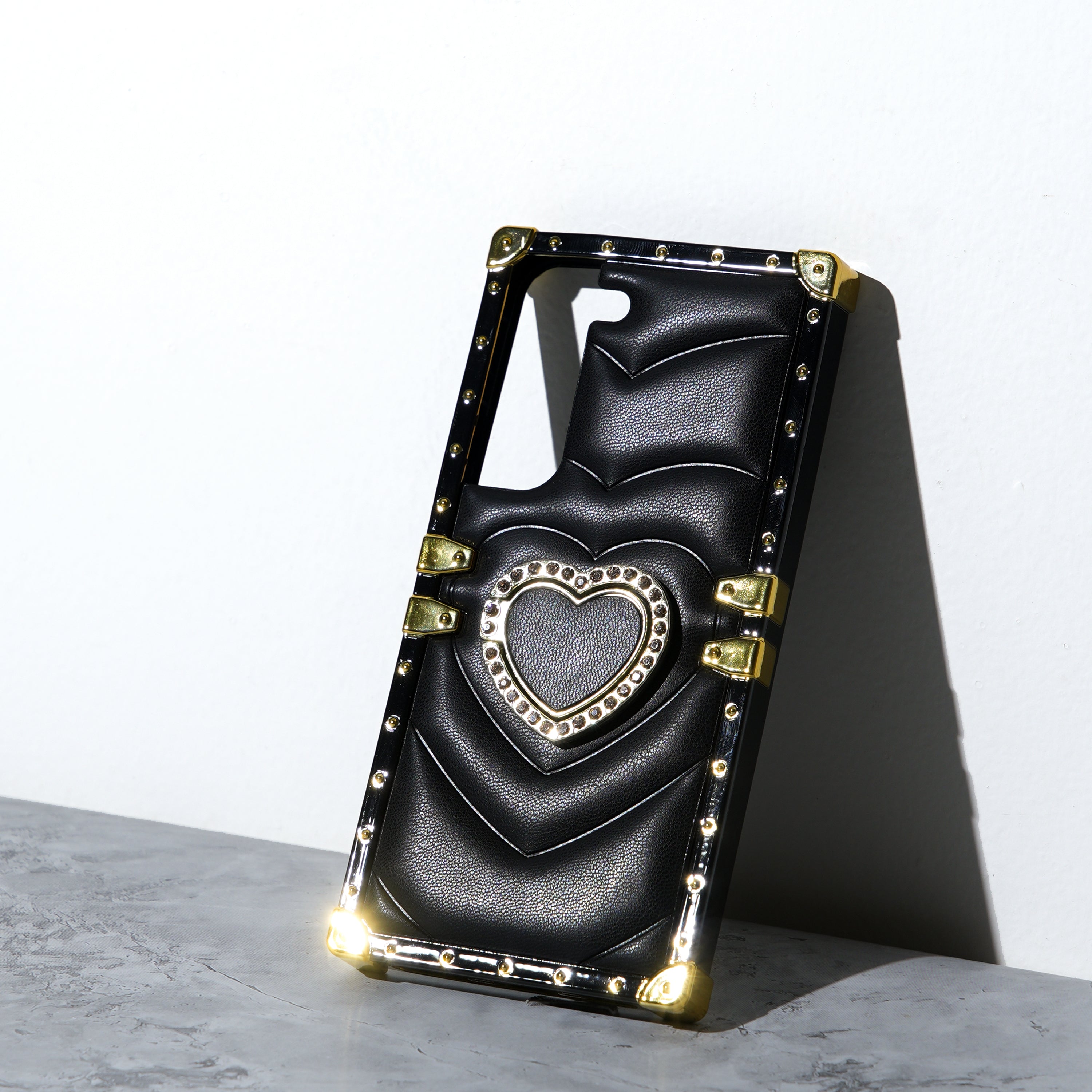 Chokore 3D Heart Leather Cover with Holder (Black) for Samsung