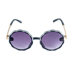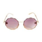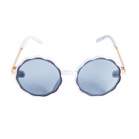 "Unleash your child’s inner flower power with our tinted floral round sunglasses! These stylish sunglasses feature round lenses with a tinted finish, adding a touch of coolness to their look. The floral appearance adds a charming effect to the sunglasses.