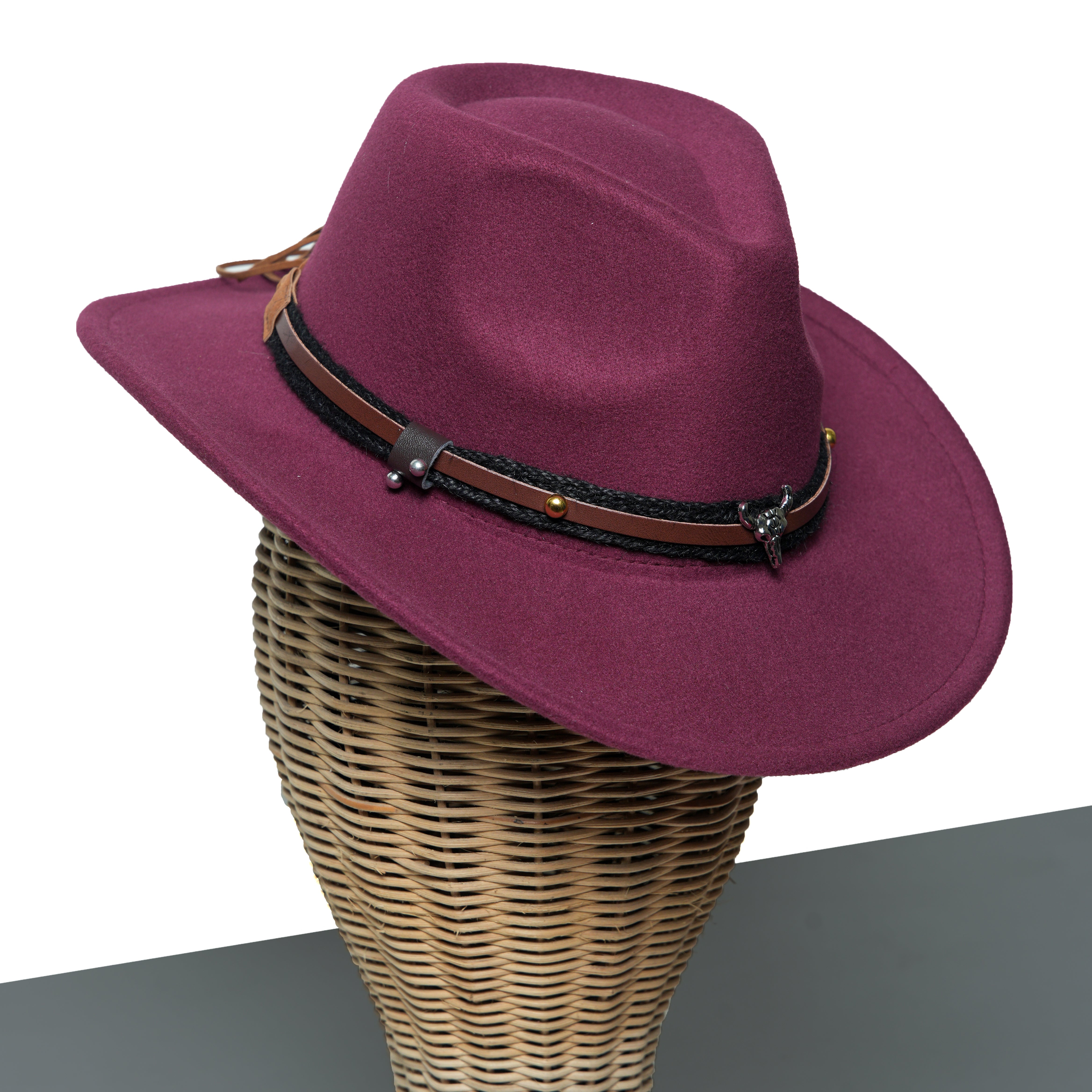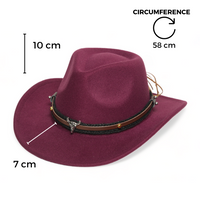 This hat is a true symbol of rugged Western charm and untamed style. The classic Fedora silhouette is elevated by the addition of a cowhead belt that captures the essence of the wild frontier. Whether you're navigating urban landscapes or stepping out for a night on the town, our Fedora with its cowhead band is the perfect accessory to complement your Western-inspired ensemble.