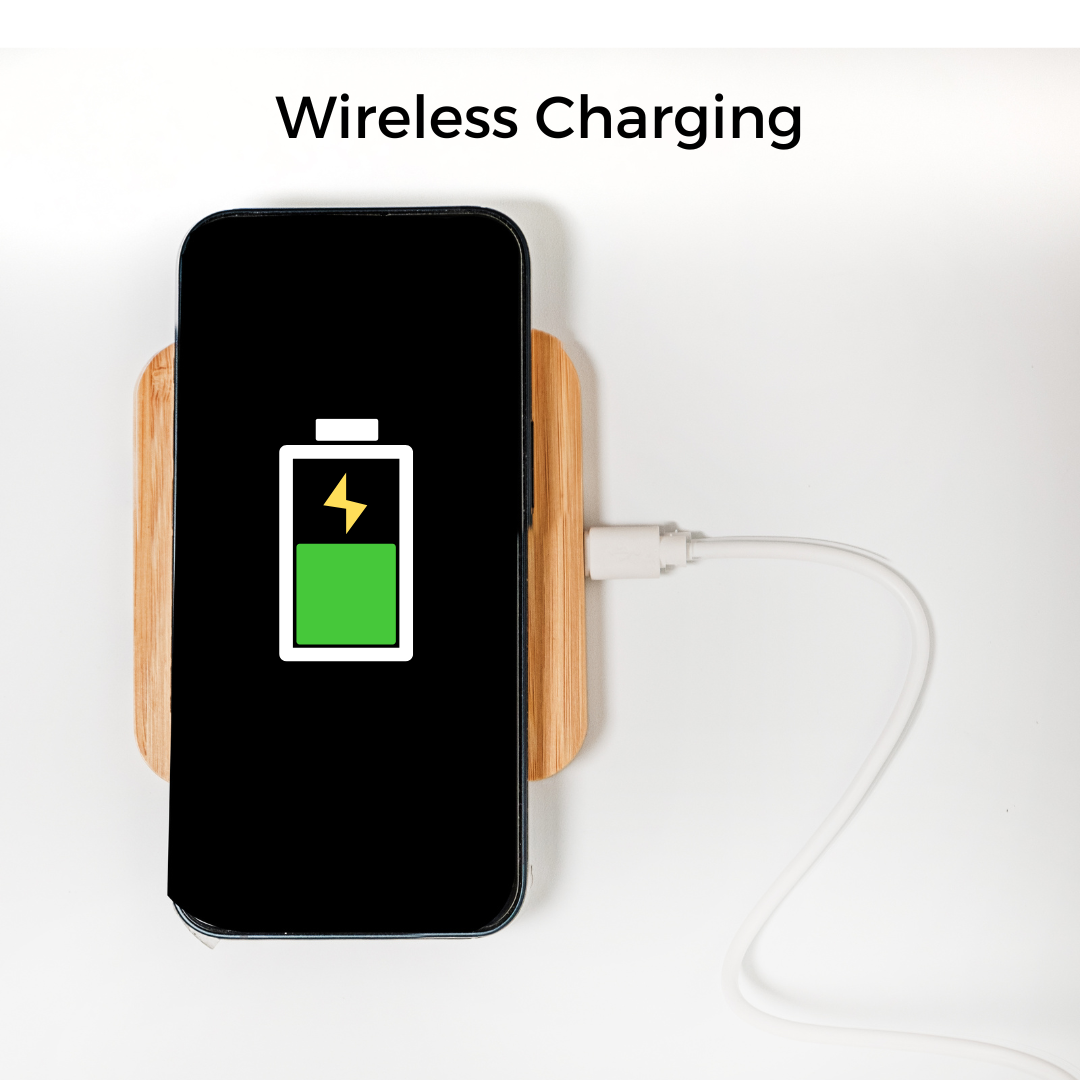 Introducing the Bamboo 15W Wireless Phone Charging Pad - the eco-friendly way to keep your phone powered up and ready to go! Made from sustainably-sourced bamboo, this charging pad not only looks sleek and stylish, but it also gives you warm fuzzies knowing that you're doing your part for the planet. And let's talk about the charging power - 15 watts of pure charging goodness! That's enough to juice up your phone faster than you can say ""Bamboo Charging Pad"". Plus, with its wireless design, you can say goodbye to fumbling with cords and hello to easy, hassle-free charging.