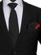 Rich, Pure Satin Silk, Black color solid tie. Paired with a Two-in-one Red & Black silk pocket square inspired by Solids designs. For the complete look. Great with a Black or Grey Jacket. Suitable for formalwear, casualwear and occassions. Elegant packaging for gifting.