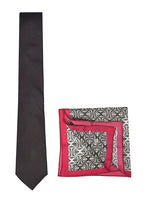 Chokore Black color silk tie & White & Black Silk Pocket Square set