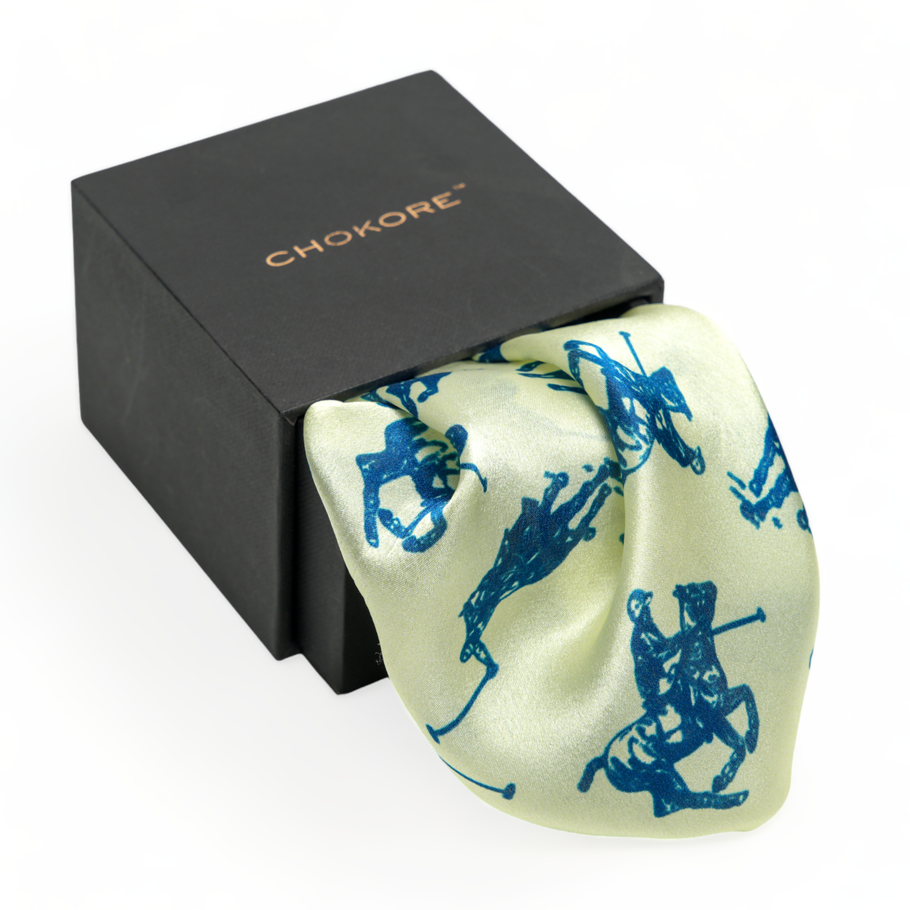 Chokore Blue & Off White Polo Print Silk Pocket Square - Sporty Silks Range