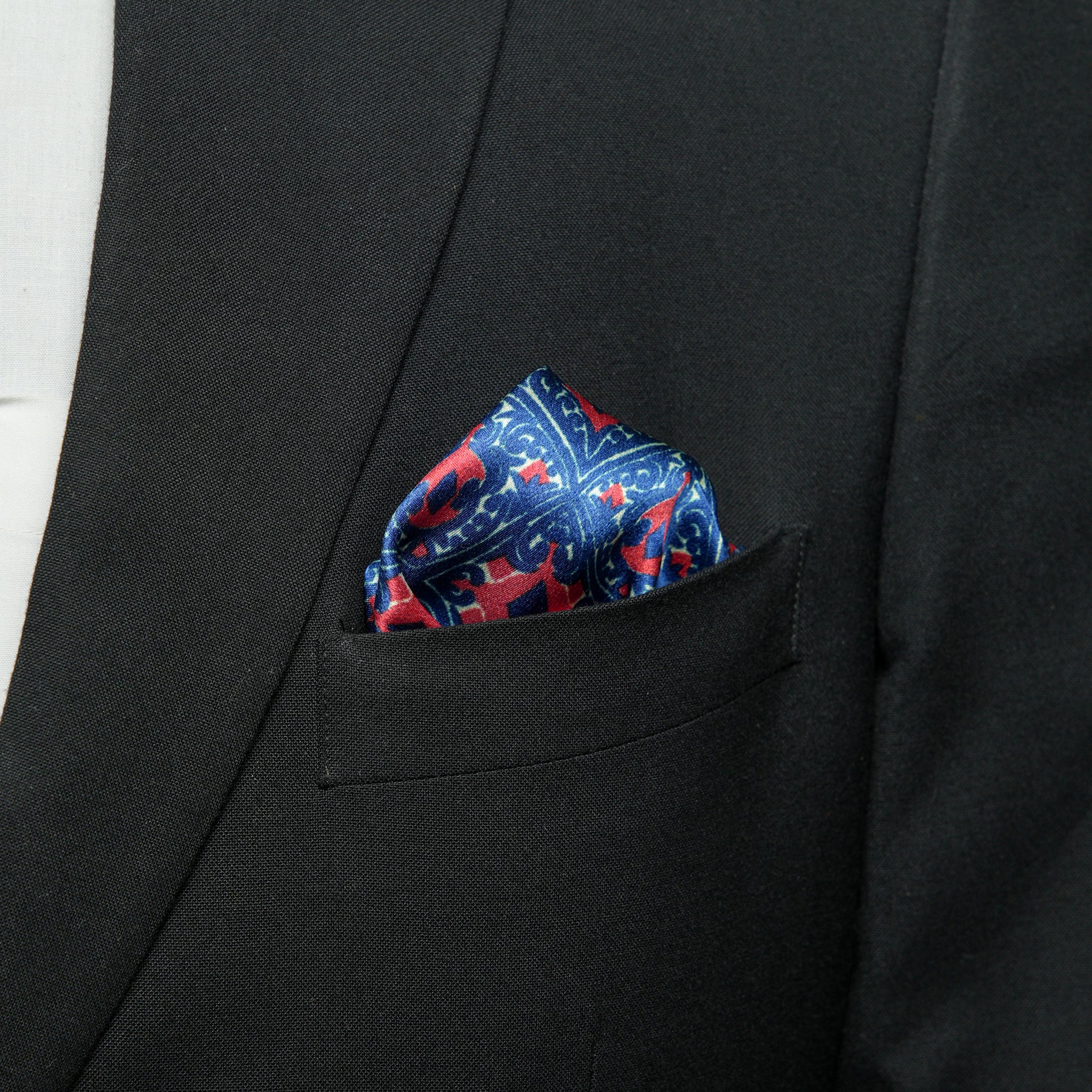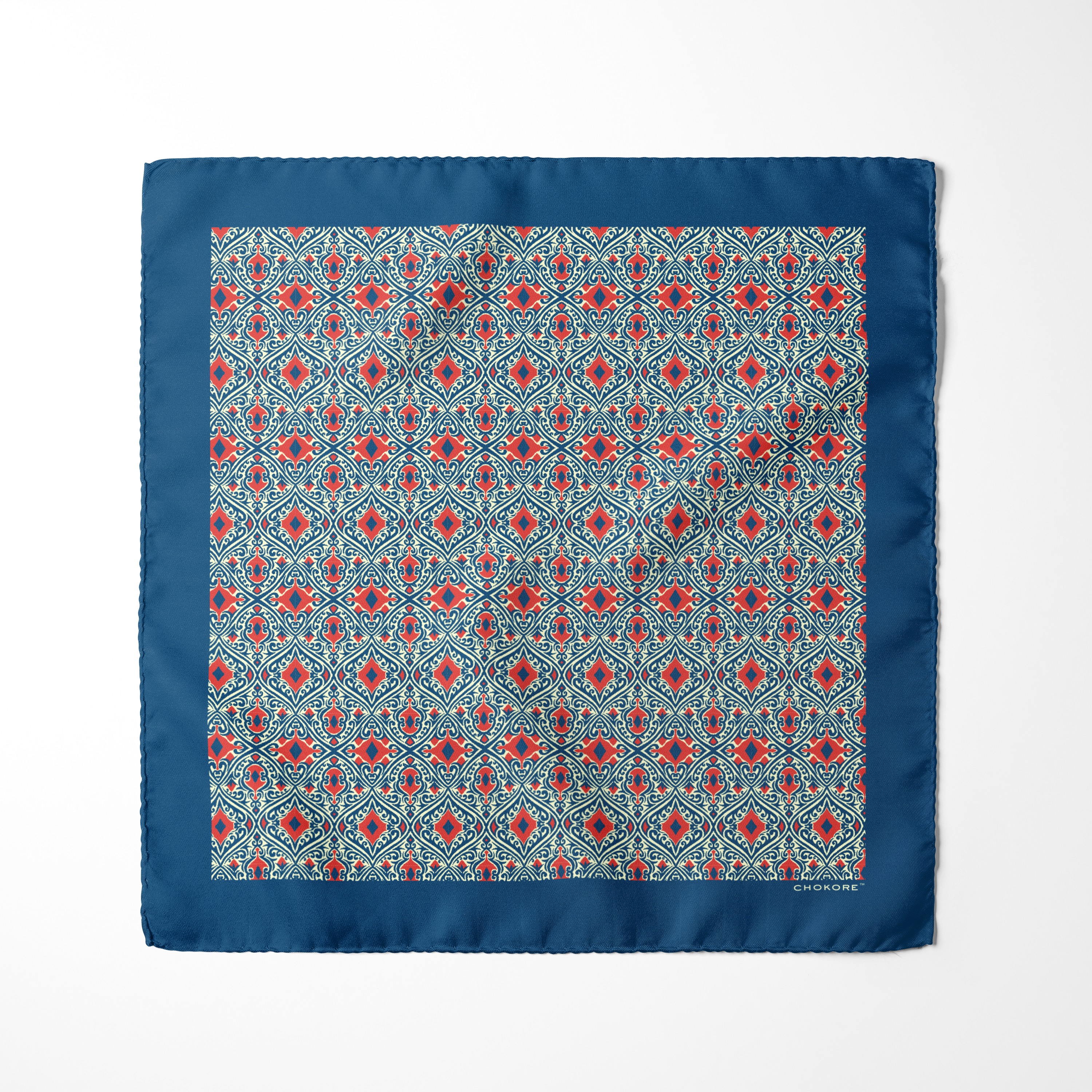 Chokore Blue & Scarlet Silk Pocket Square - Indian at Heart Range