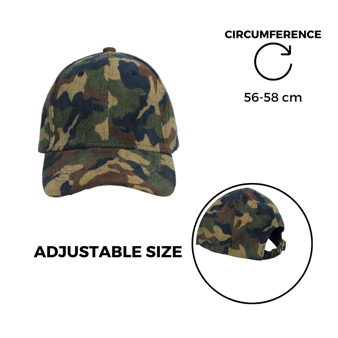 Introducing our Camouflage Corduroy Cap – where rugged style meets urban flair for an effortlessly cool look! Crafted with durable corduroy material, this baseball cap features a trendy camouflage print that adds a touch of edge to your outfit. Whether you're exploring the great outdoors or running errands in the city, this cap offers both comfort and style. With its adjustable strap, it ensures a perfect fit for all-day wear. Get ready to blend into your surroundings with this Cap – because standing out doesn't always mean being seen!