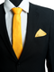 - Package contains: "1 x Yellow Silk Necktie - Solids Range, 1 x Checkered Past Pocket Square (Orange)"