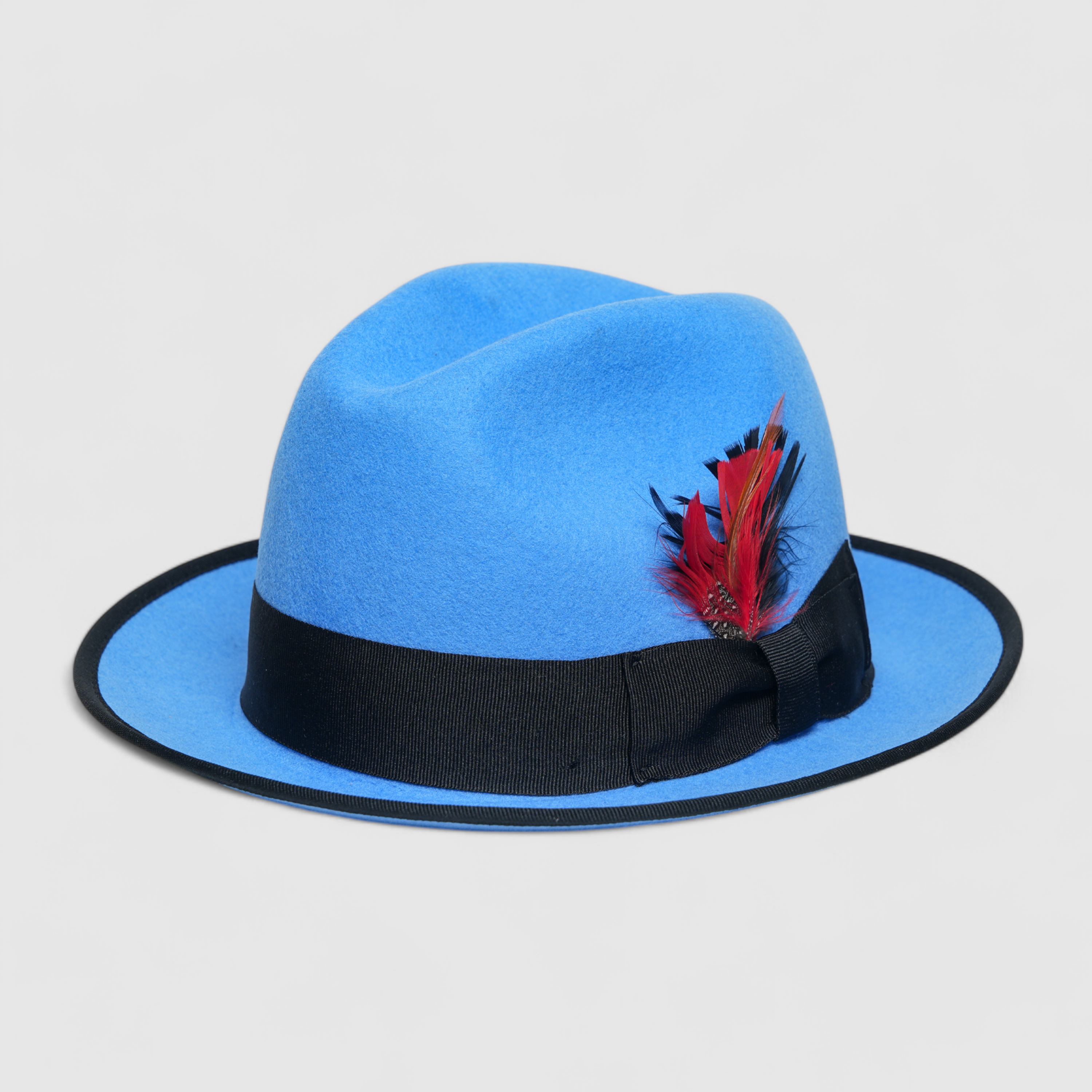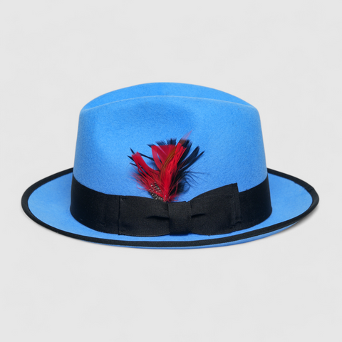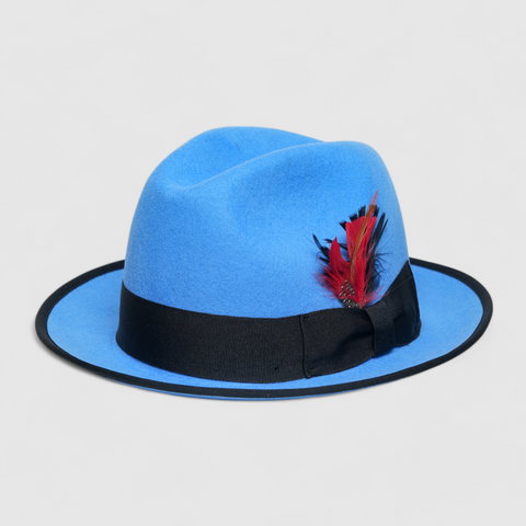 Chokore Classic Bluebird Fedora Hat with Feather Detail (Soft Blue)