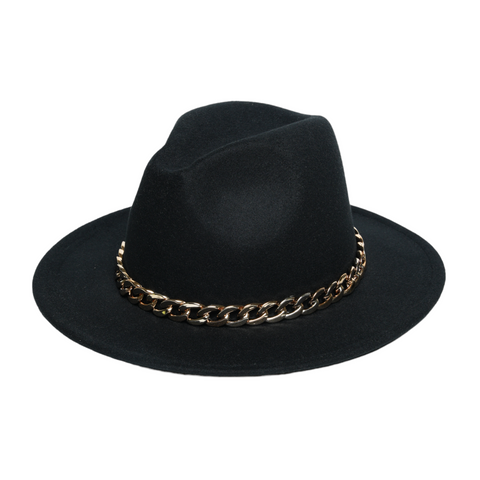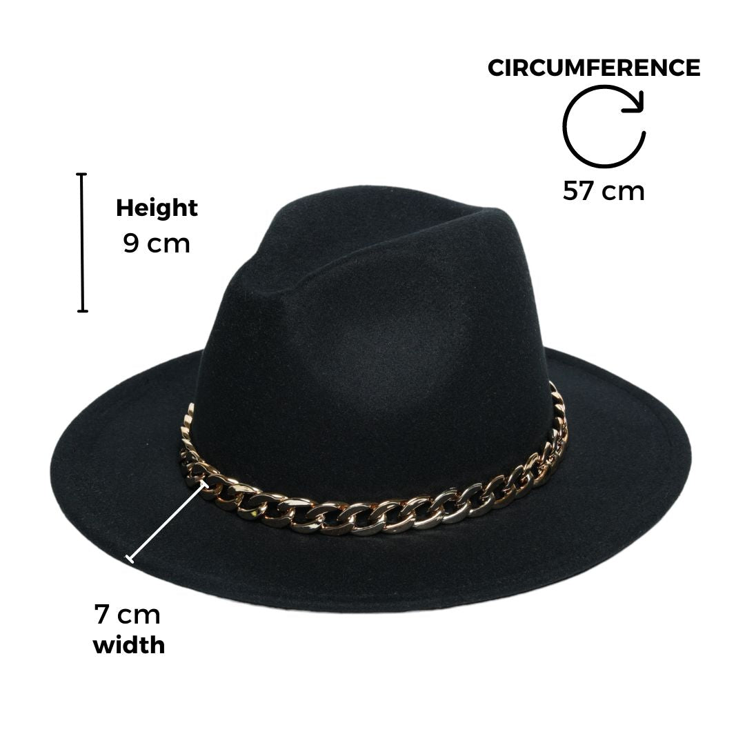 Introducing Chokore Classic Fedora Hat (Black), featuring a captivating and stylish faux metal, chunky, and interlocked chain belt. The belt provides a unique metallic look yet lightweighted. This amazing hat blends timeless elegance with allure, adding a touch of glamour and sophistication, making it perfect for special occasions or adding flair to your everyday style. Crafted with care and attention to detail, this hat is a must-have accessory for anyone looking to make a statement with style.