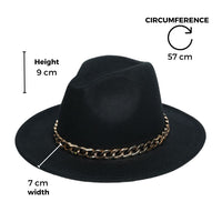 Chokore Classic Fedora Hat with Stylish Chain Belt (Black)