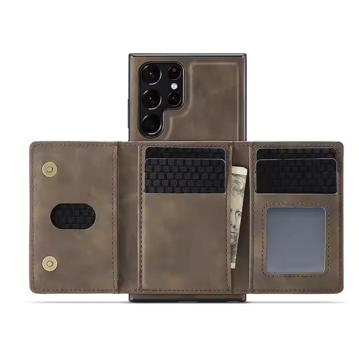 Introducing our premium iPhone Cover , expertly crafted from high-quality PU material that boasts impressive durability and style. This case is designed to provide superior shockproof and anti-fall protection for your device, ensuring it remains safe from accidental drops. With an elegant leather flip wallet attachment, it not only serves as a protective case but also offers functionality with its built-in holder and wallet feature. The sleek design your iPhone while providing peace of mind regarding safety. This wallet-style iPhone cover is designed with your lifestyle in mind. It is equipped with multiple card slots, making it easy to carry your essential cards without the bulk of a separate wallet.