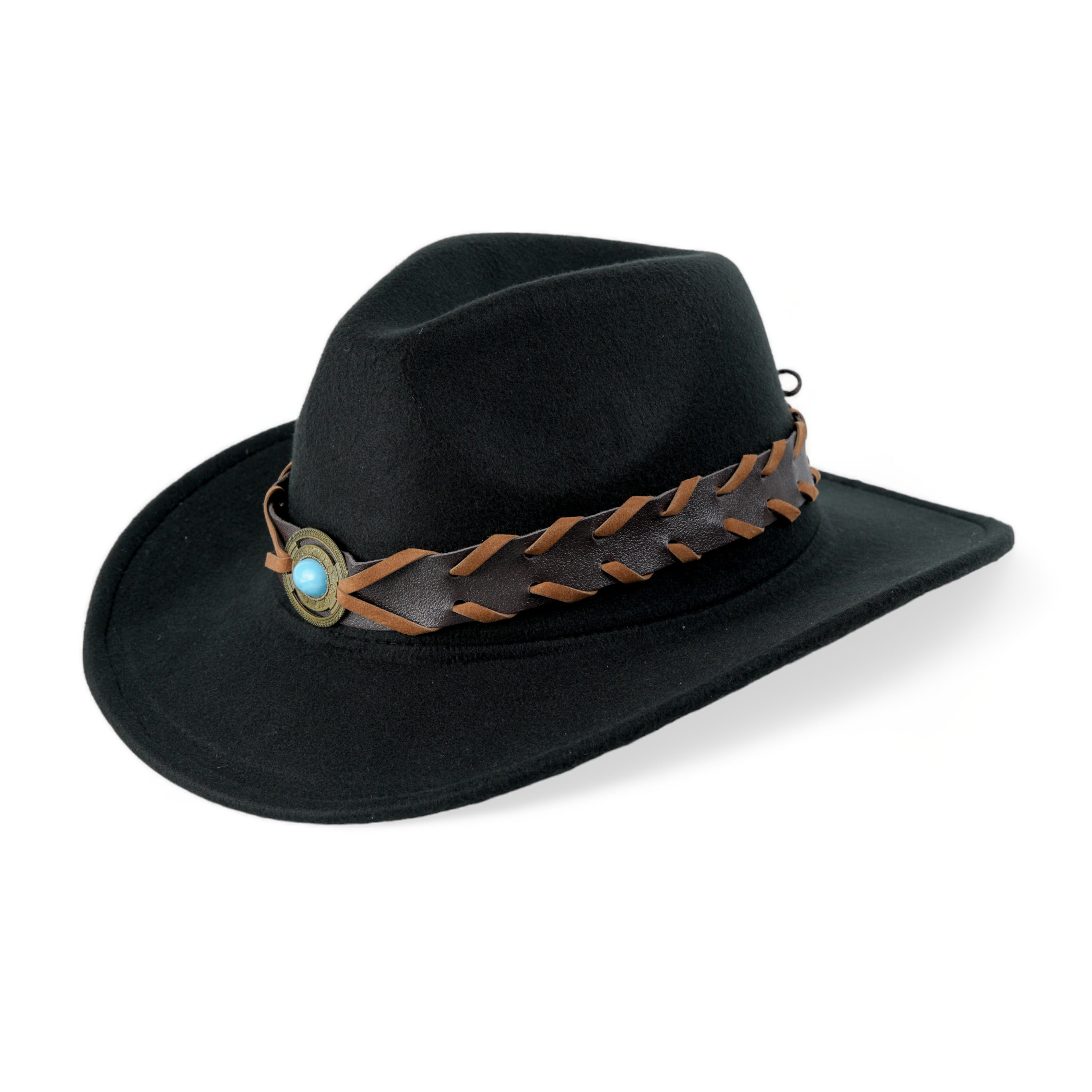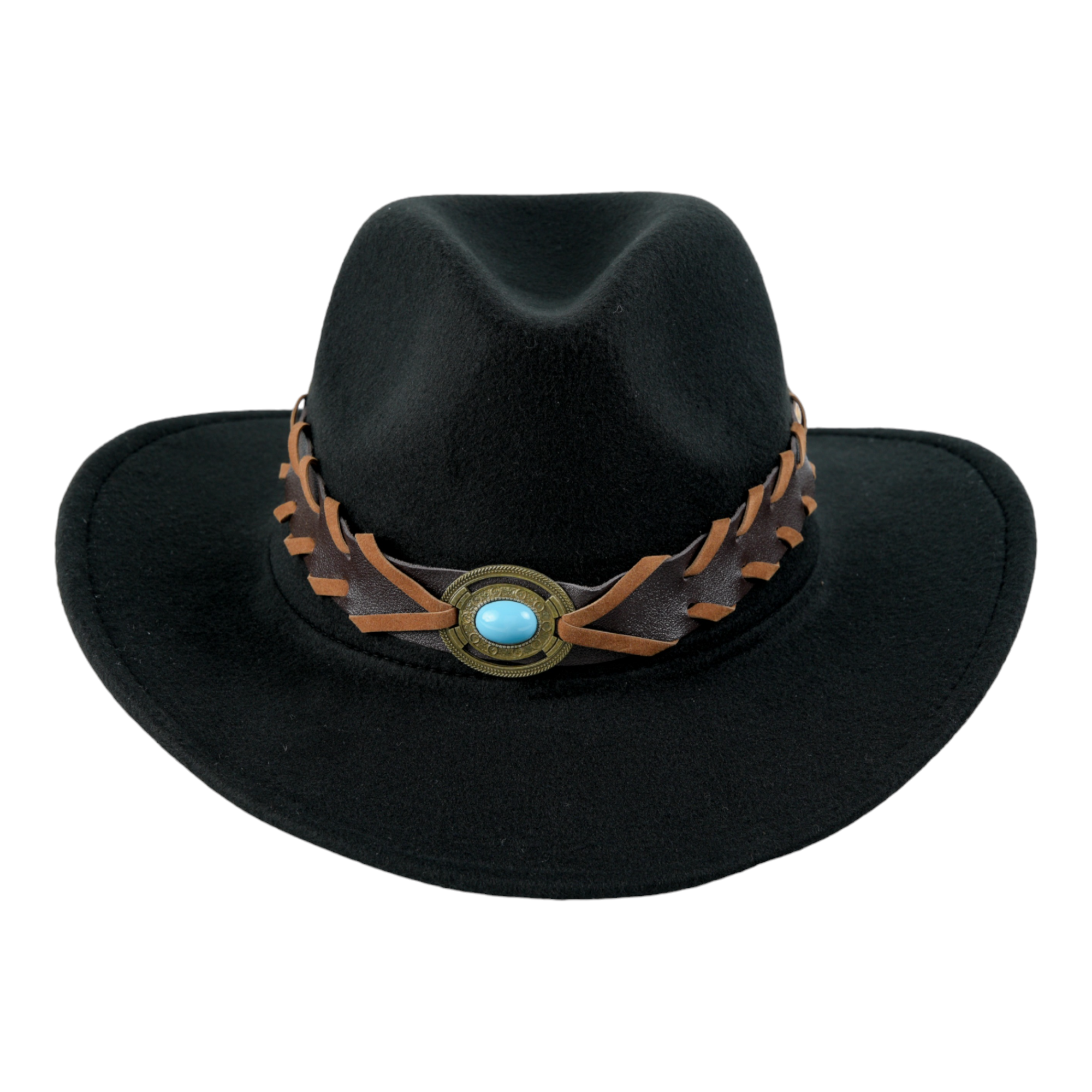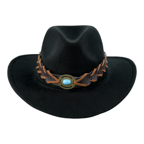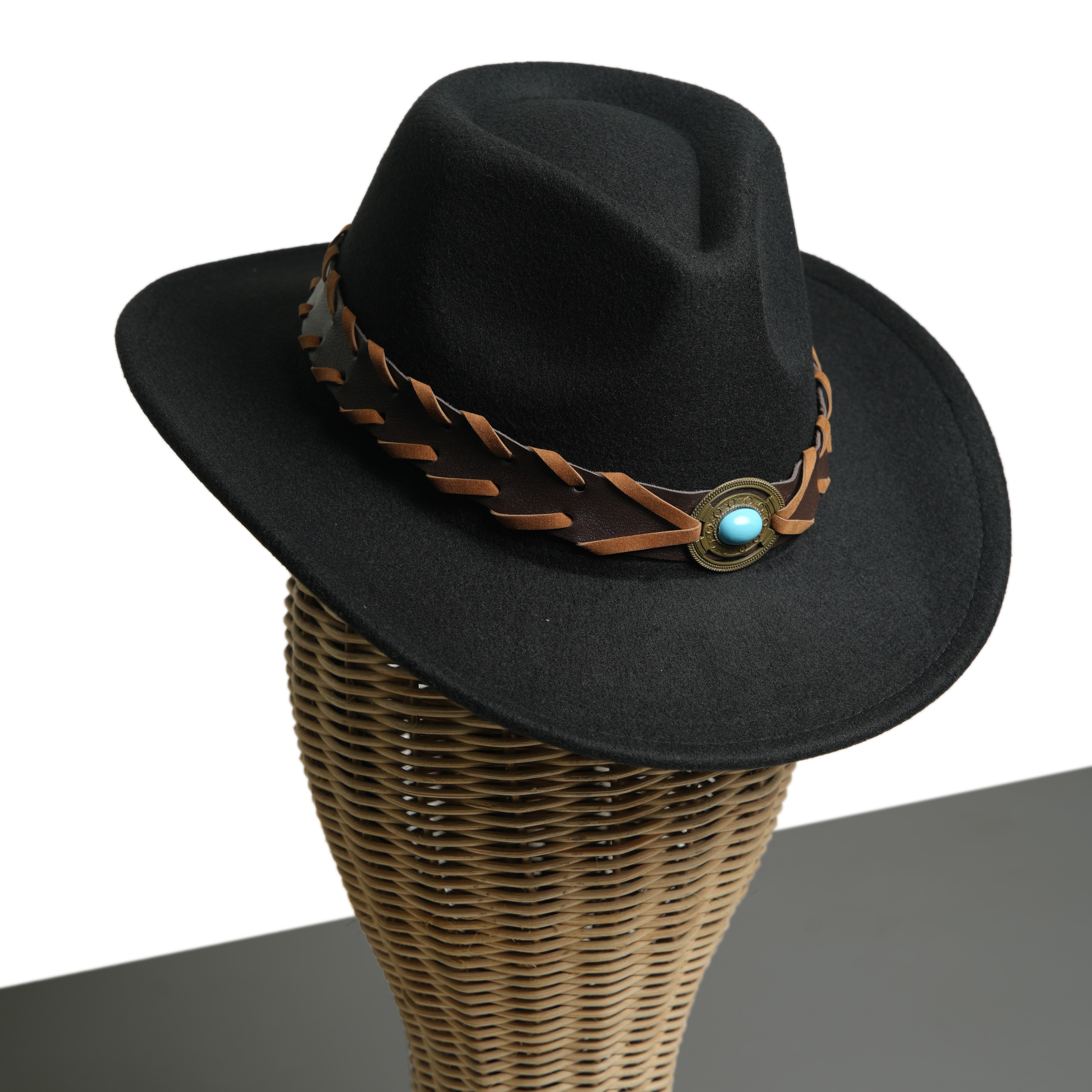 "Unleash your inner wrangler with our Cowboy Hat featuring a braided PU belt that's as rugged as it is refined. The cowboy Hat is a harmonious blend of Western tradition and contemporary flair. Its braided PU belt adds a touch of edgy sophistication to your cowboy ensemble.