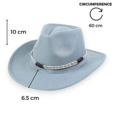 This hat is a perfect fusion of Western flair and bohemian charm. The classic cowboy silhouette gets a stylish upgrade with a braided thread belt, adding a touch of texture and a hint of free-spirited whimsy. Whether you're riding the range or kicking up dust at a country music festival, our Cowboy Hat with its braided thread belt is the ideal accessory to complete your cowboy ensemble. Embrace your inner cowpoke and let this exceptional headpiece become your go-to fashion statement.