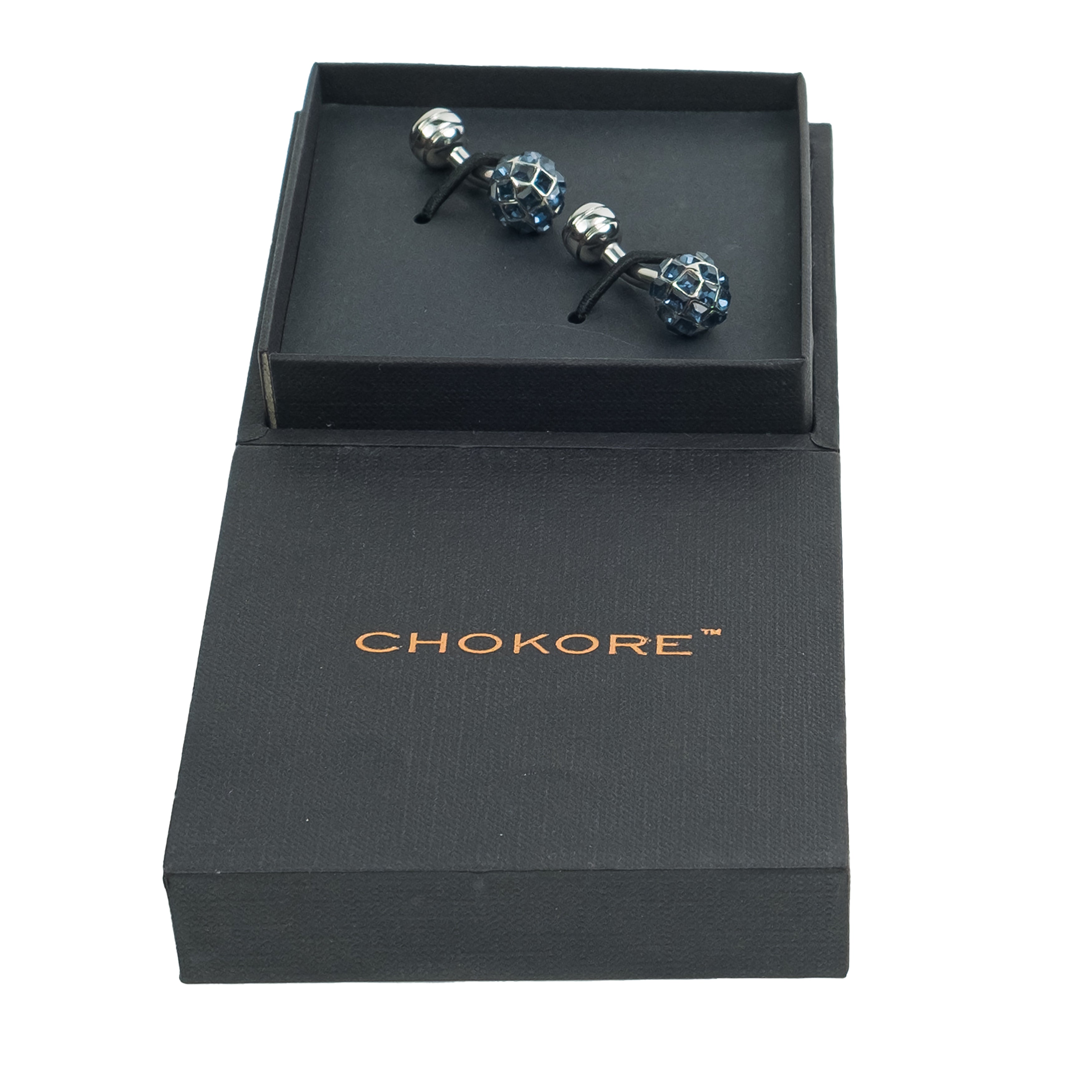 Add a sparkling touch to your attire with Chokore’s blue crystal sphere brass cufflinks. Beautifully crafted for weddings and festive celebrations.